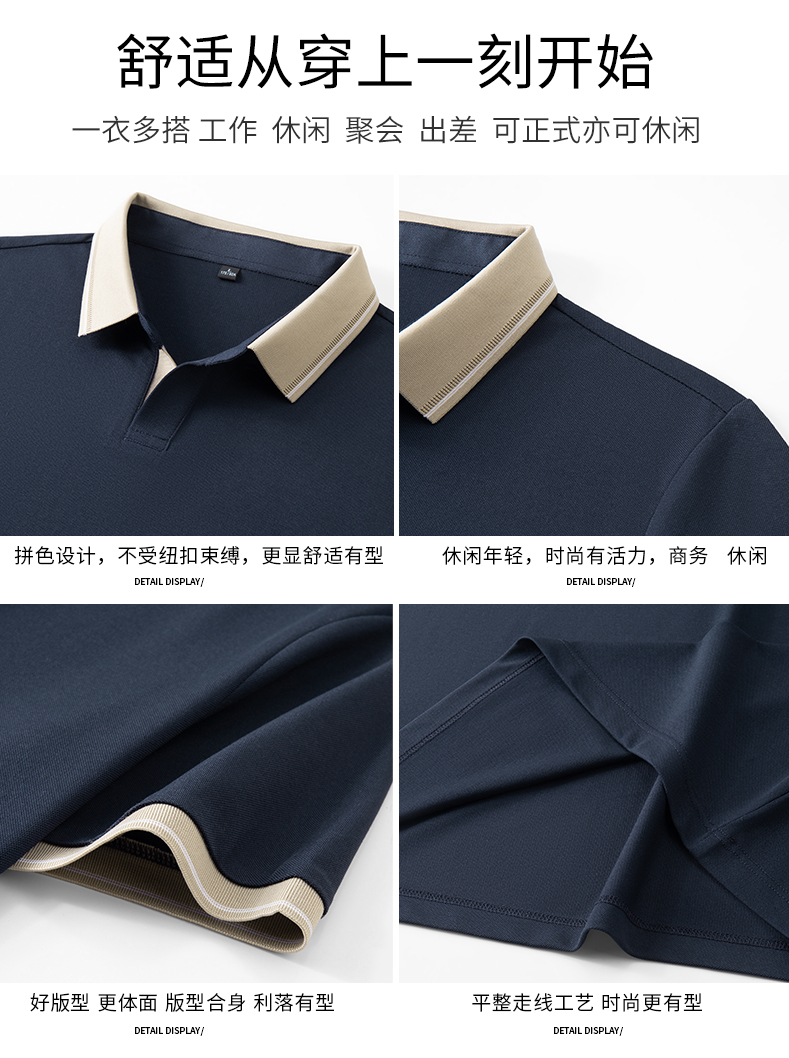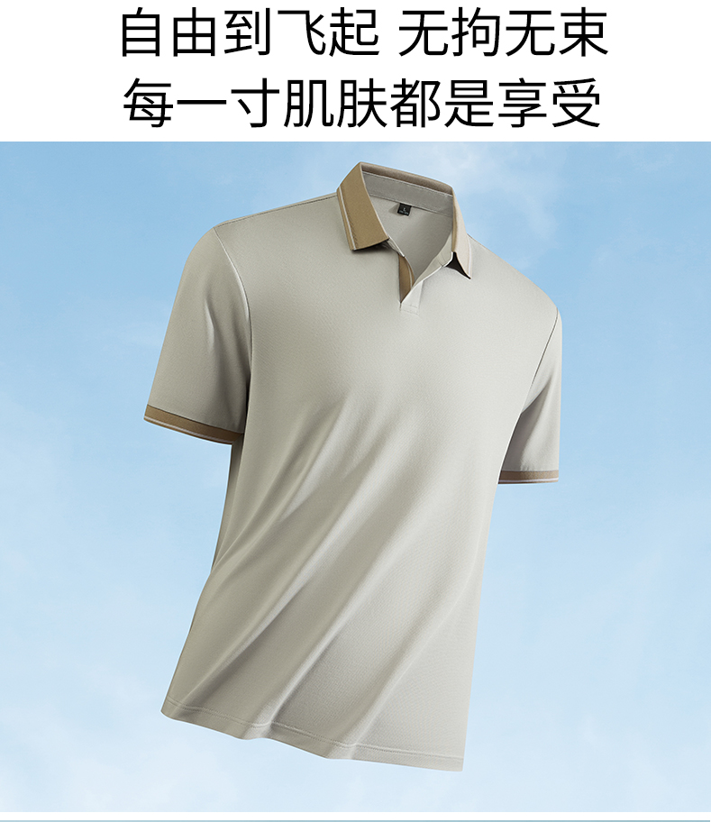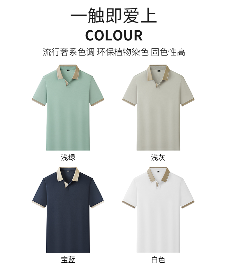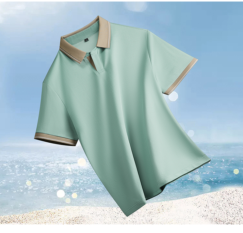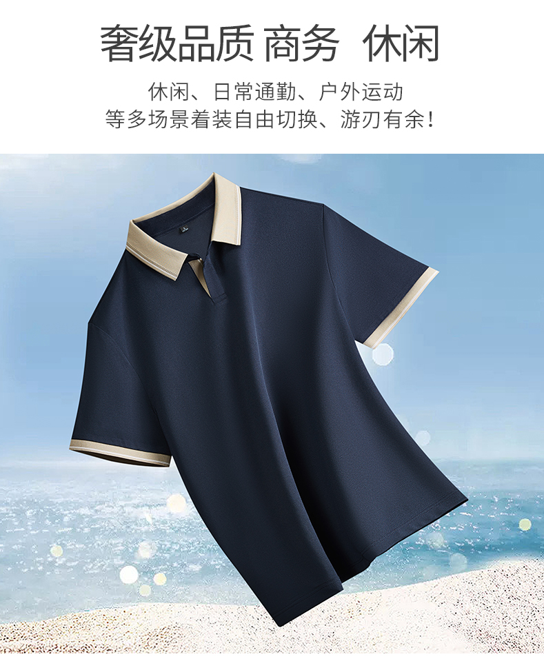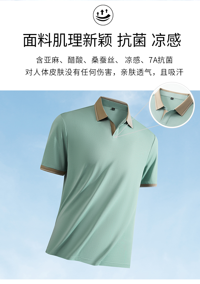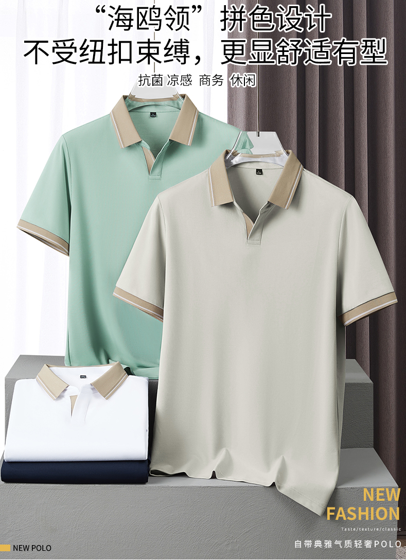 半身缘男装 夏季亚麻桑蚕丝海鸥领拼色抗菌凉感商务短袖POLO衫8236