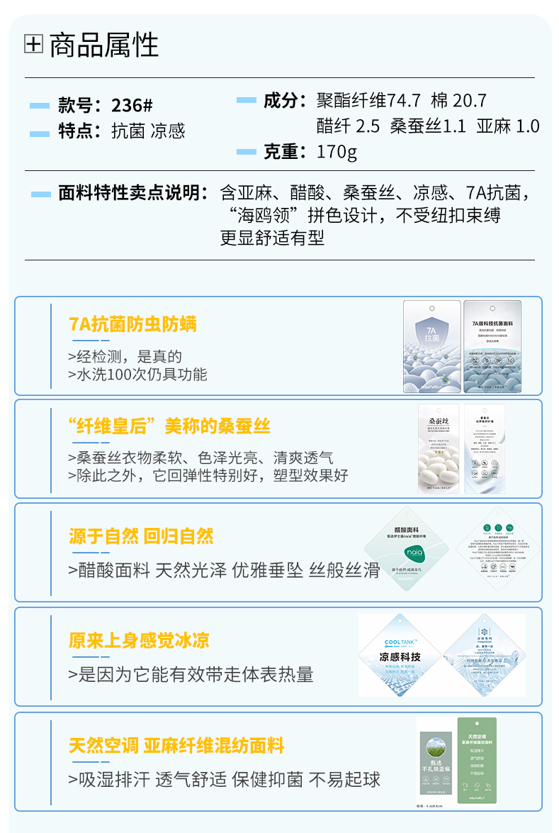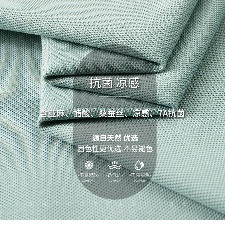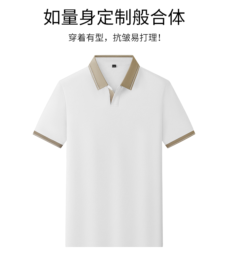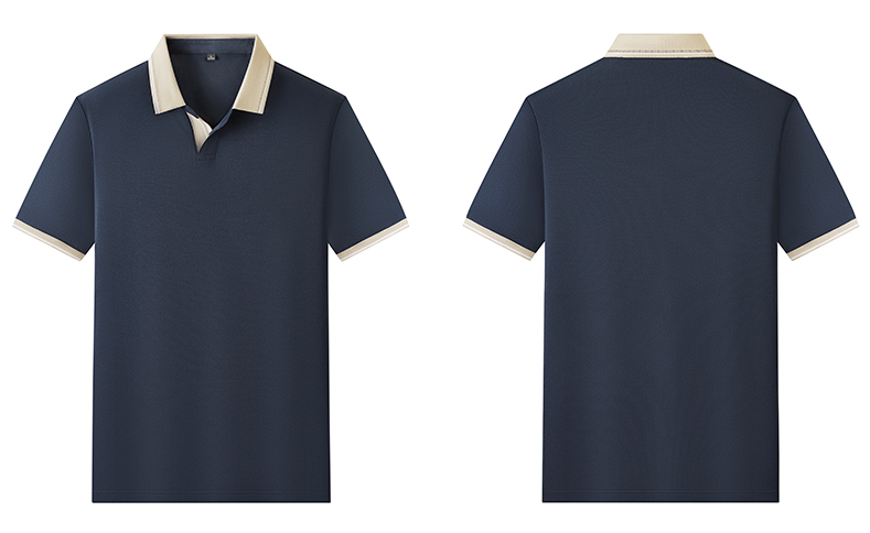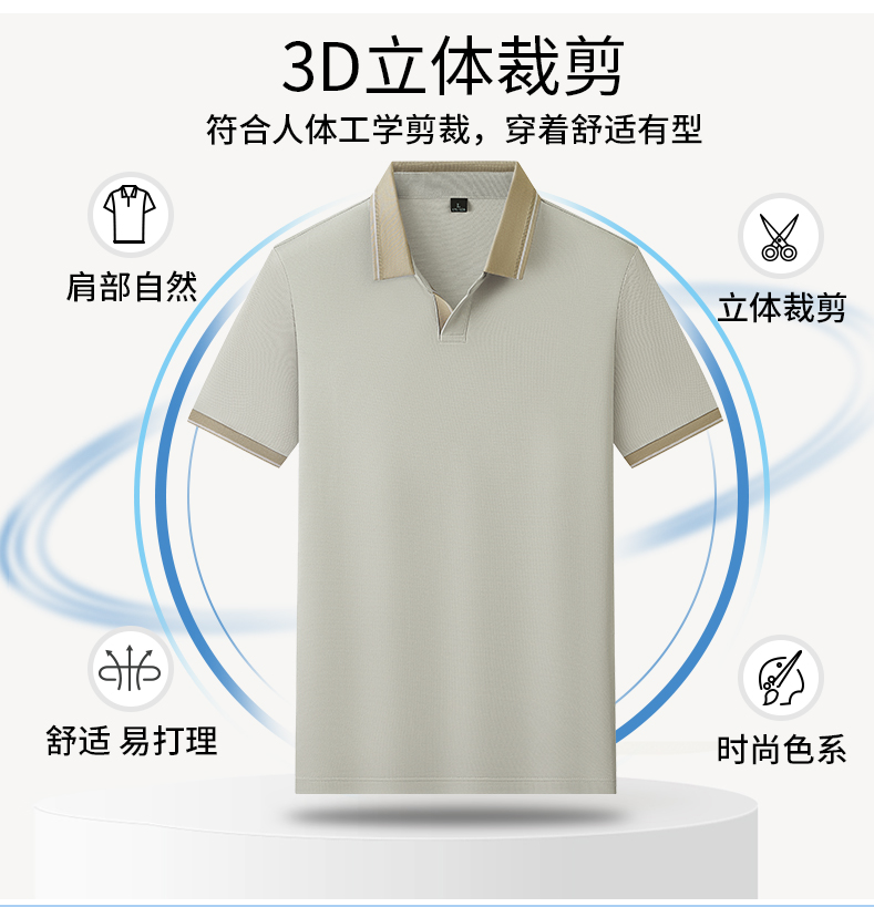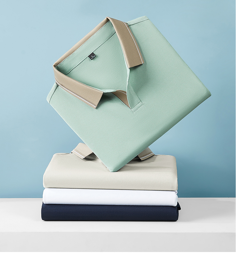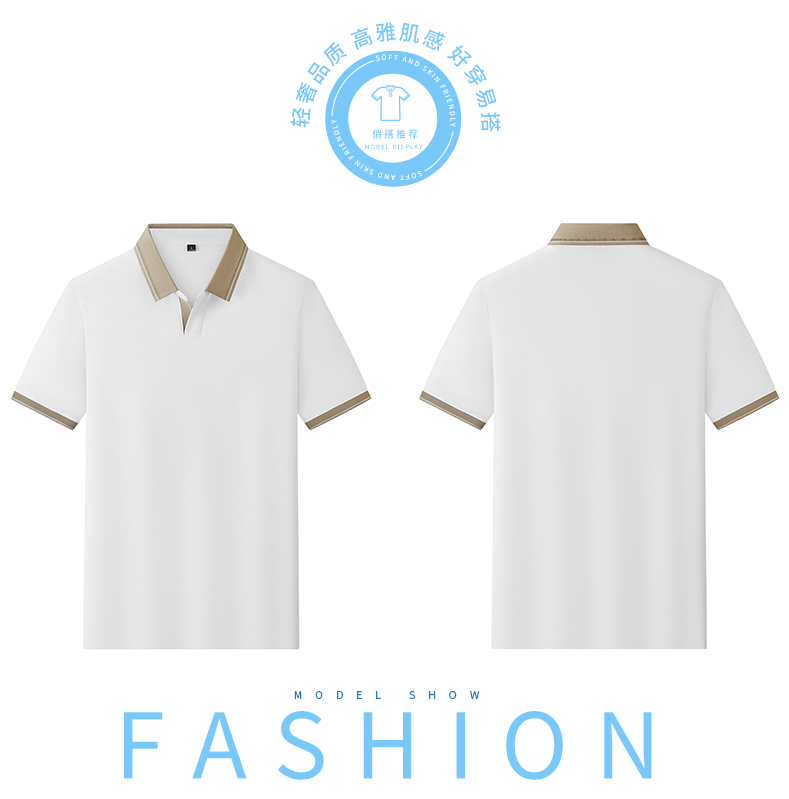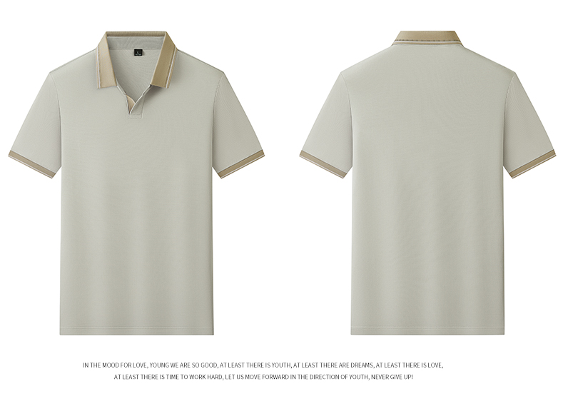 半身缘男装 夏季亚麻桑蚕丝海鸥领拼色抗菌凉感商务短袖POLO衫8236