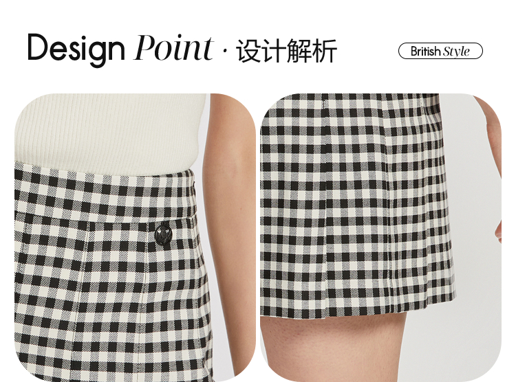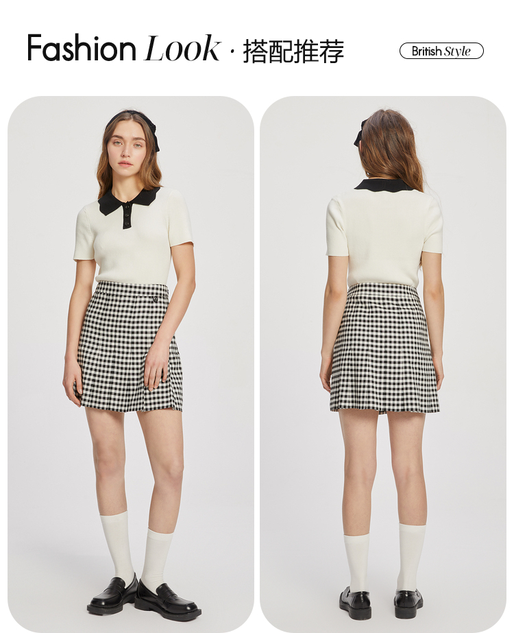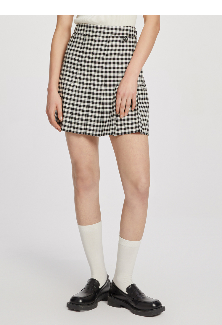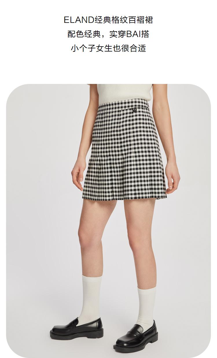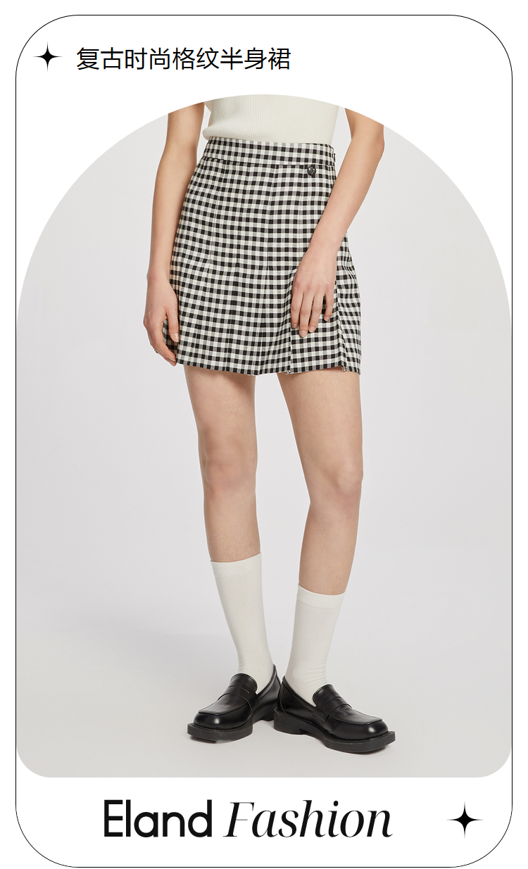 ELAND衣恋复古格纹高腰设计感小众时尚半身裙女EEWHC23N3M