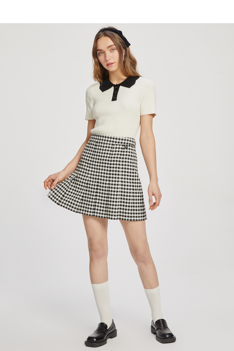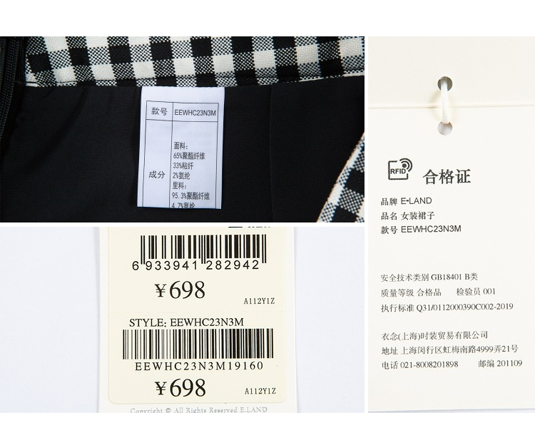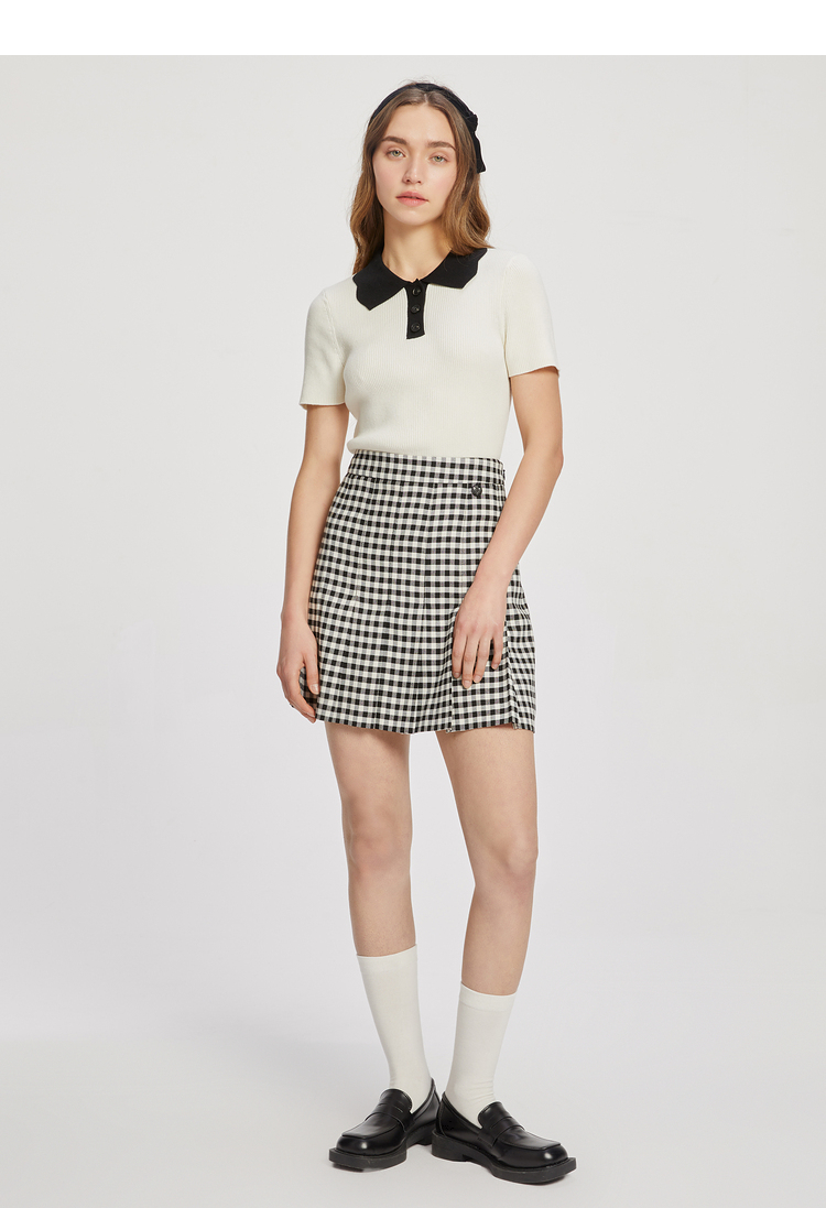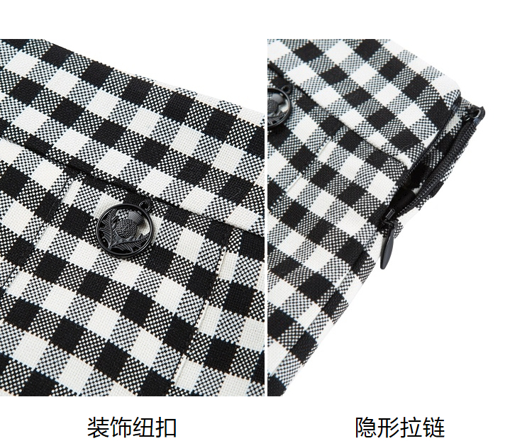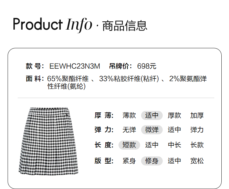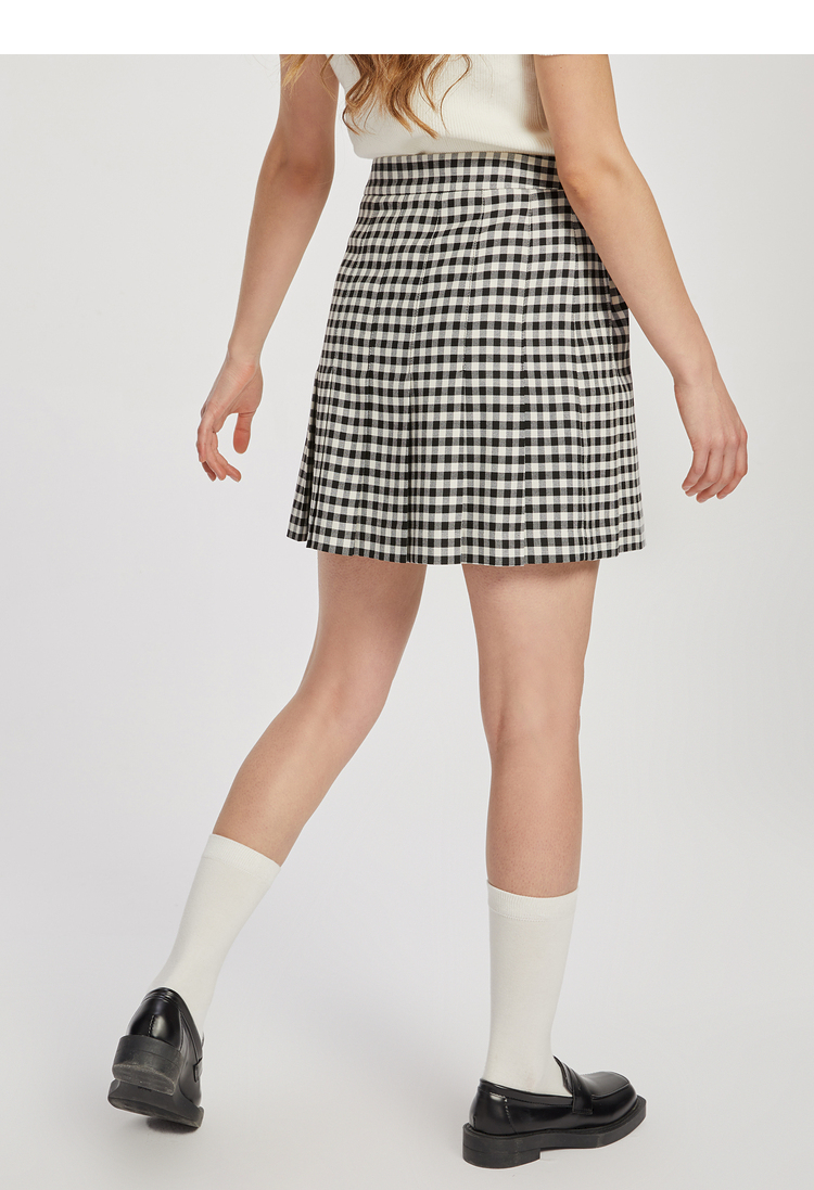 ELAND衣恋复古格纹高腰设计感小众时尚半身裙女EEWHC23N3M