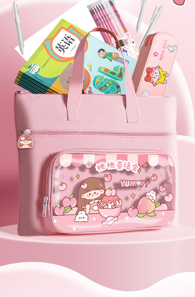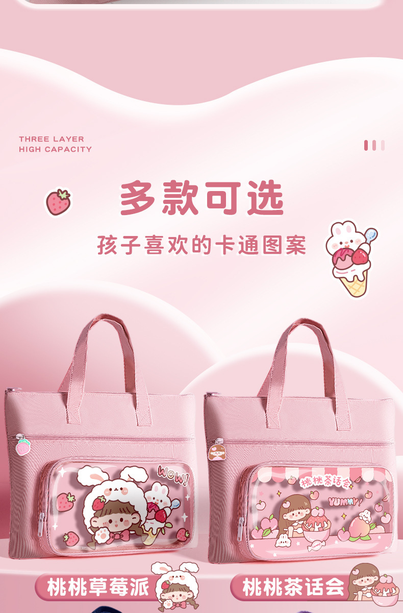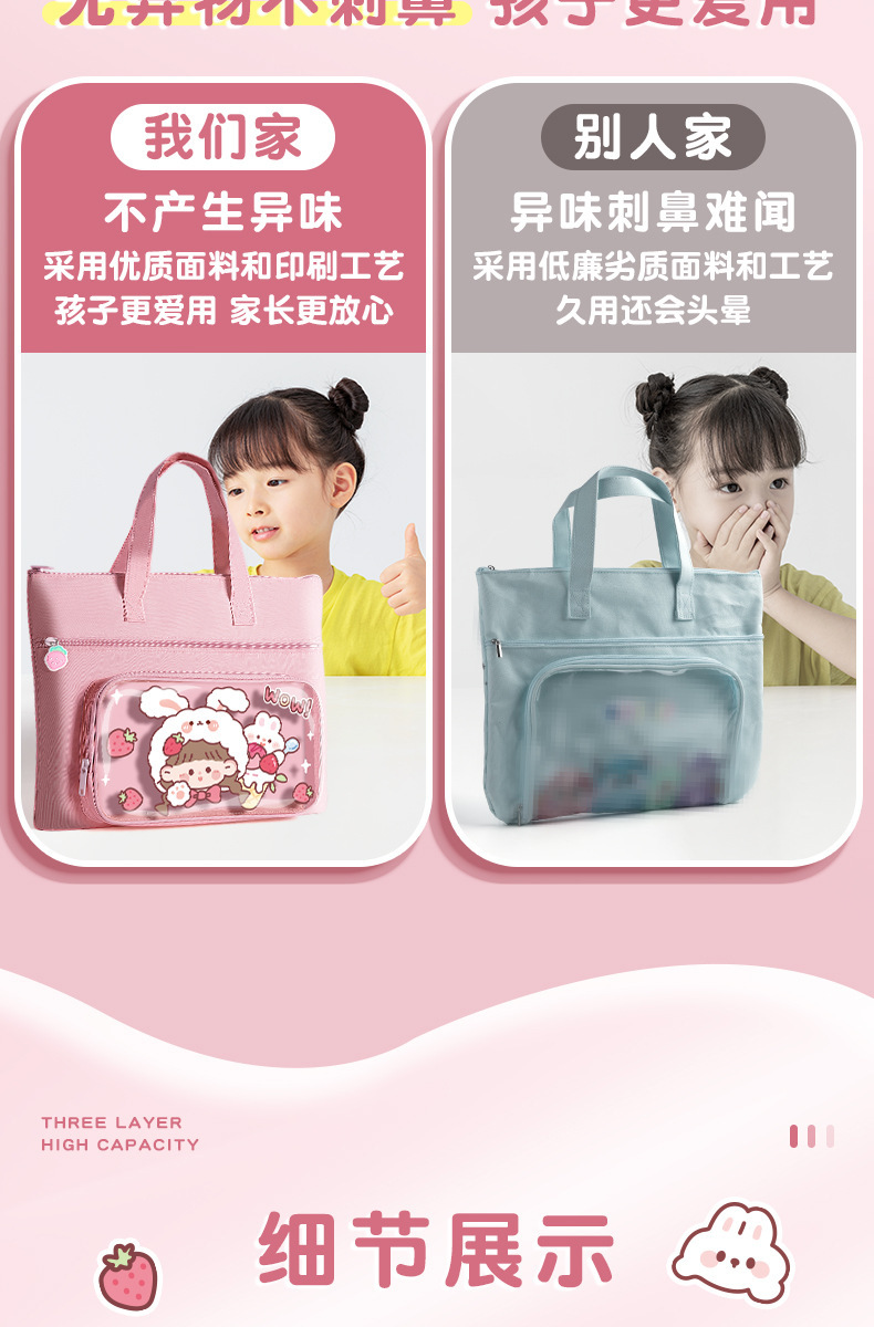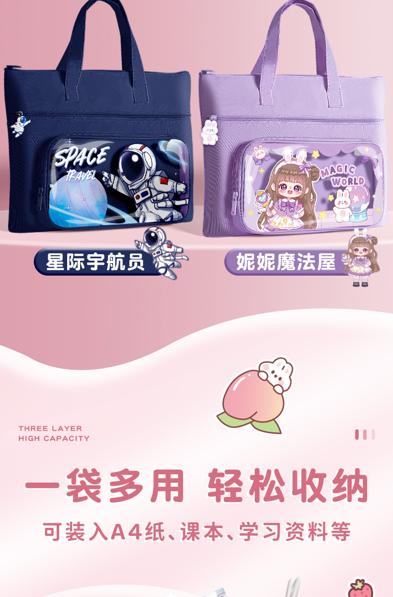 「19.9到手!数款可选」咔巴熊小学生补习袋 A4儿童手提拎书袋女生男孩辅导班补课帆布课外