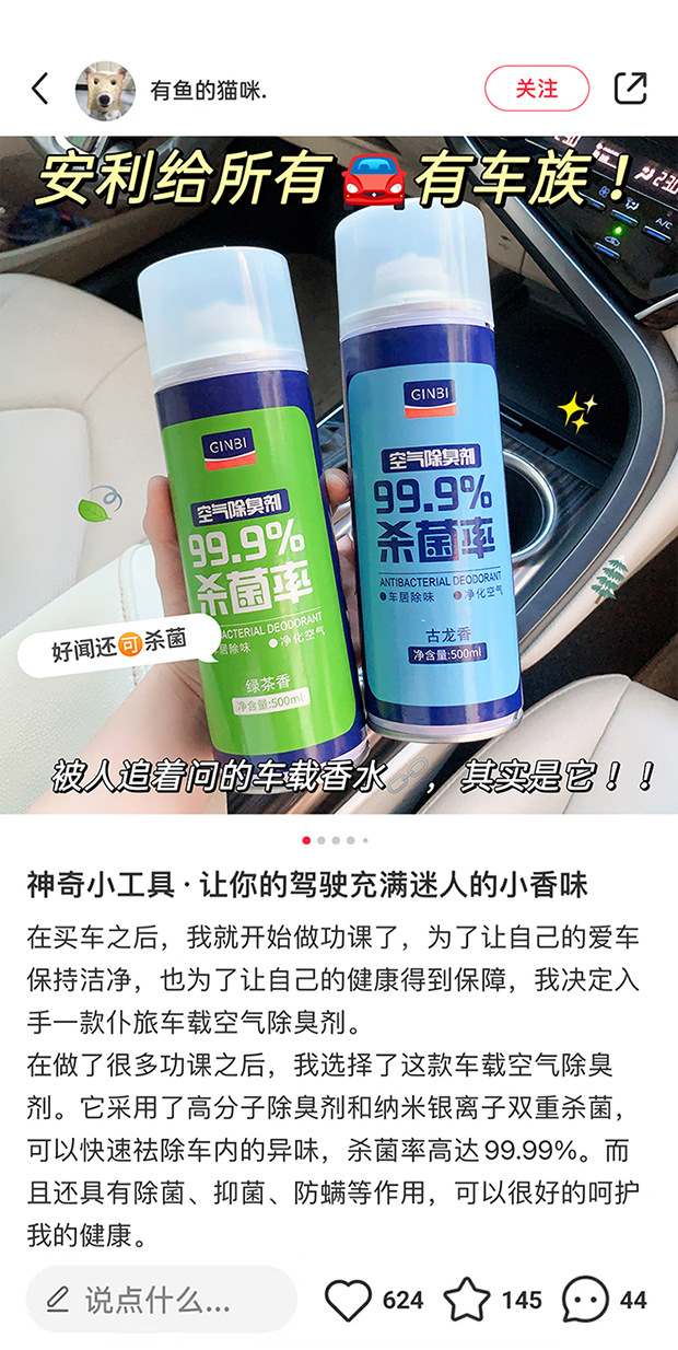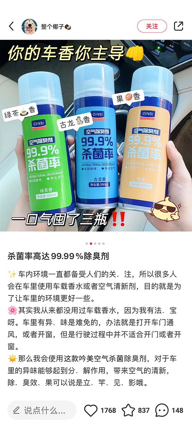 「29.9到手3大瓶!拼团同款」吟美汽车空气除臭剂 留香空气清新除异味车用除臭喷雾汽车养护