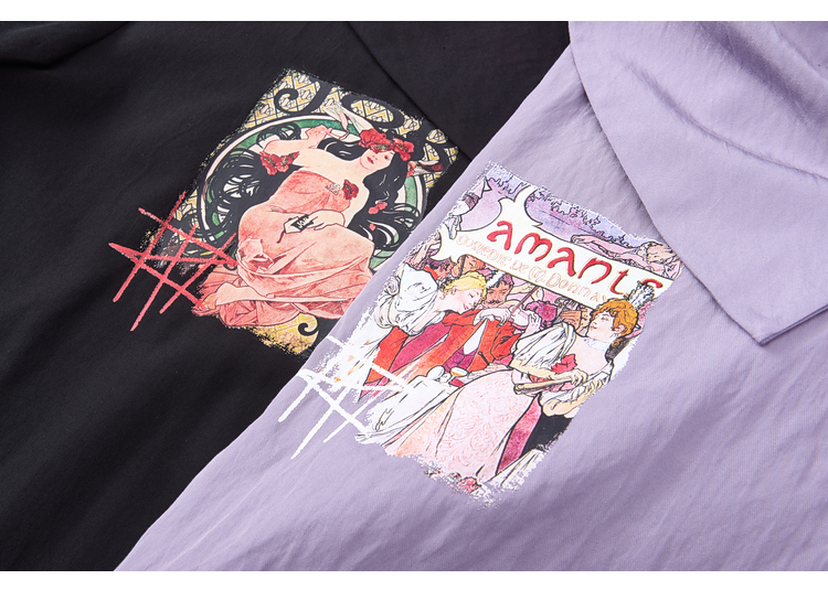 两三事 遁入花境 2025春季新款休闲拼色插肩袖印花刺绣t恤女宽松S25CT444