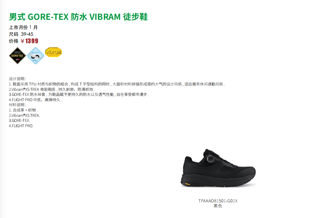 探路者男式GORE-TEX防水VIBRAM徒步鞋TFAAAO81501