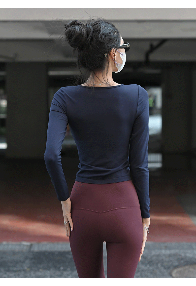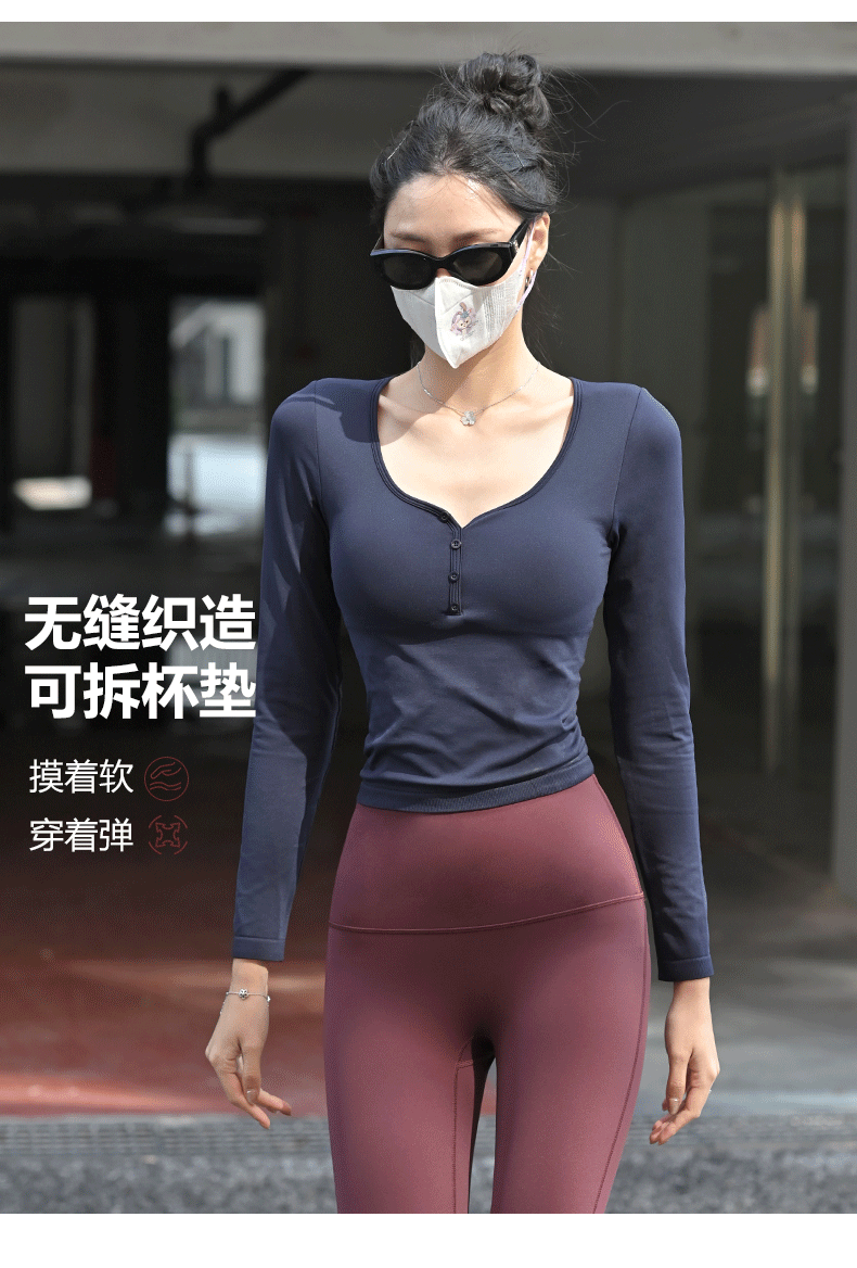 【带胸垫】Beemen无缝一体织瑜伽服女上衣高弹微磨毛秋冬运动长袖