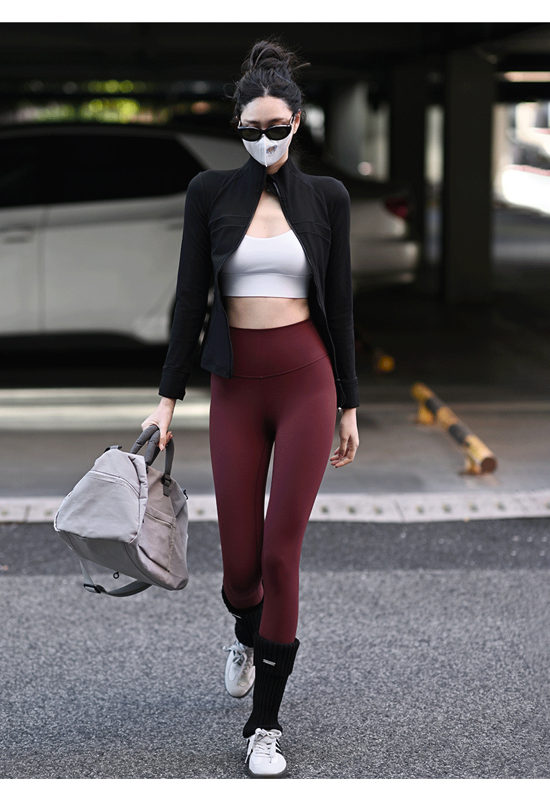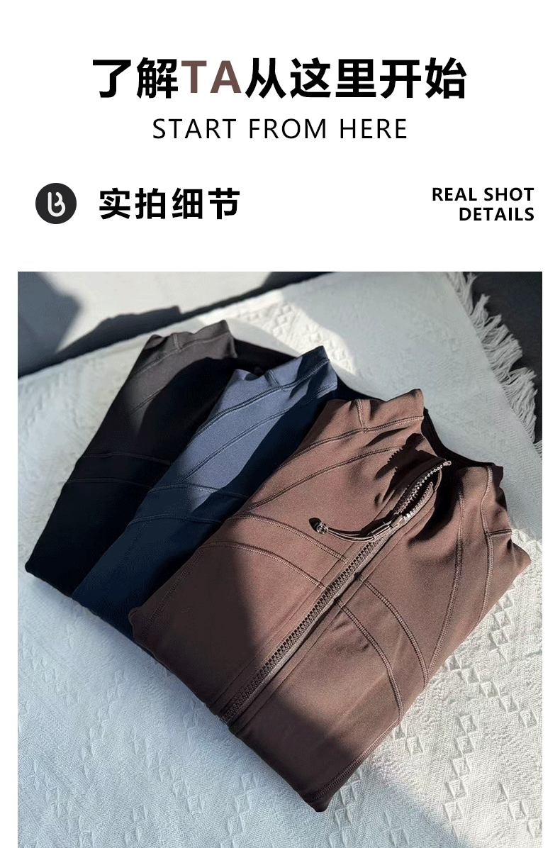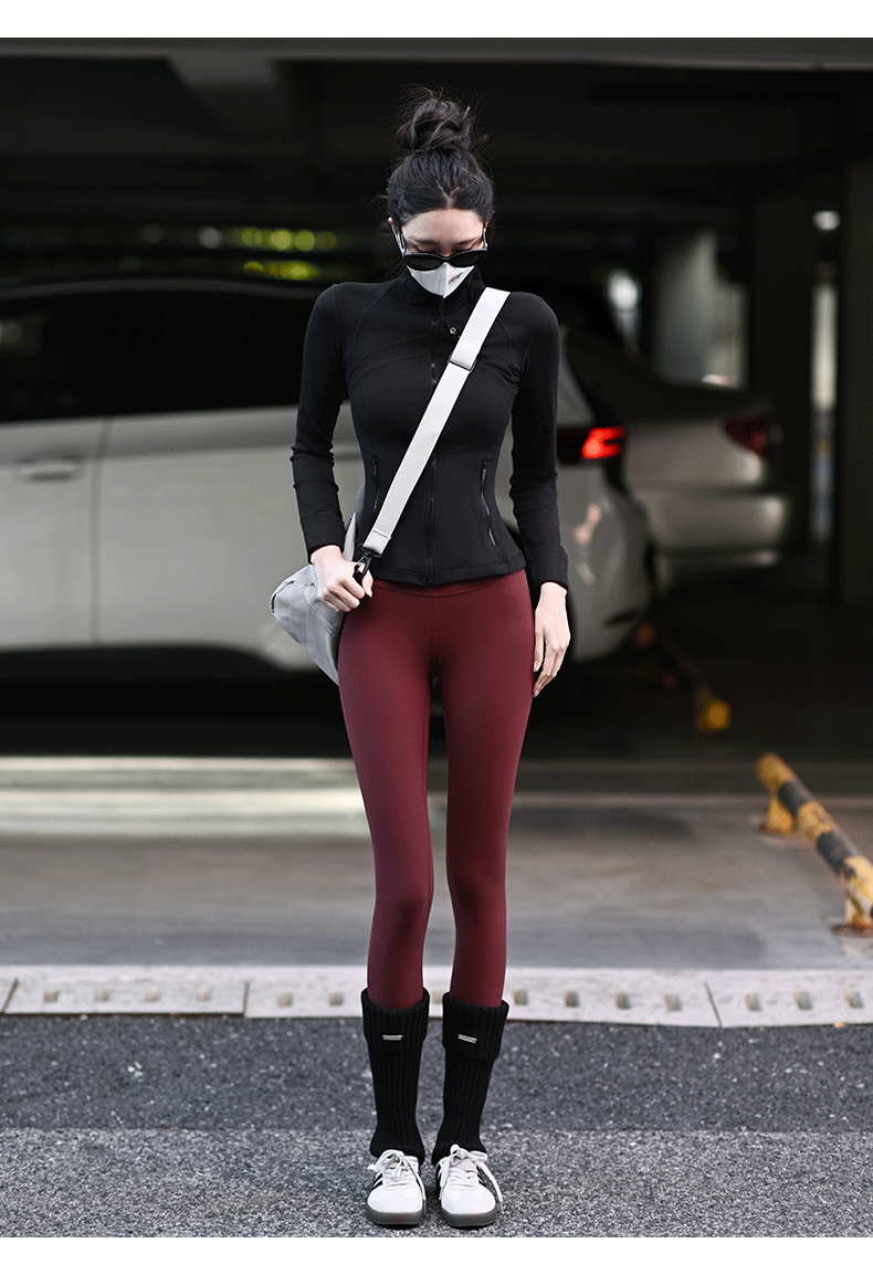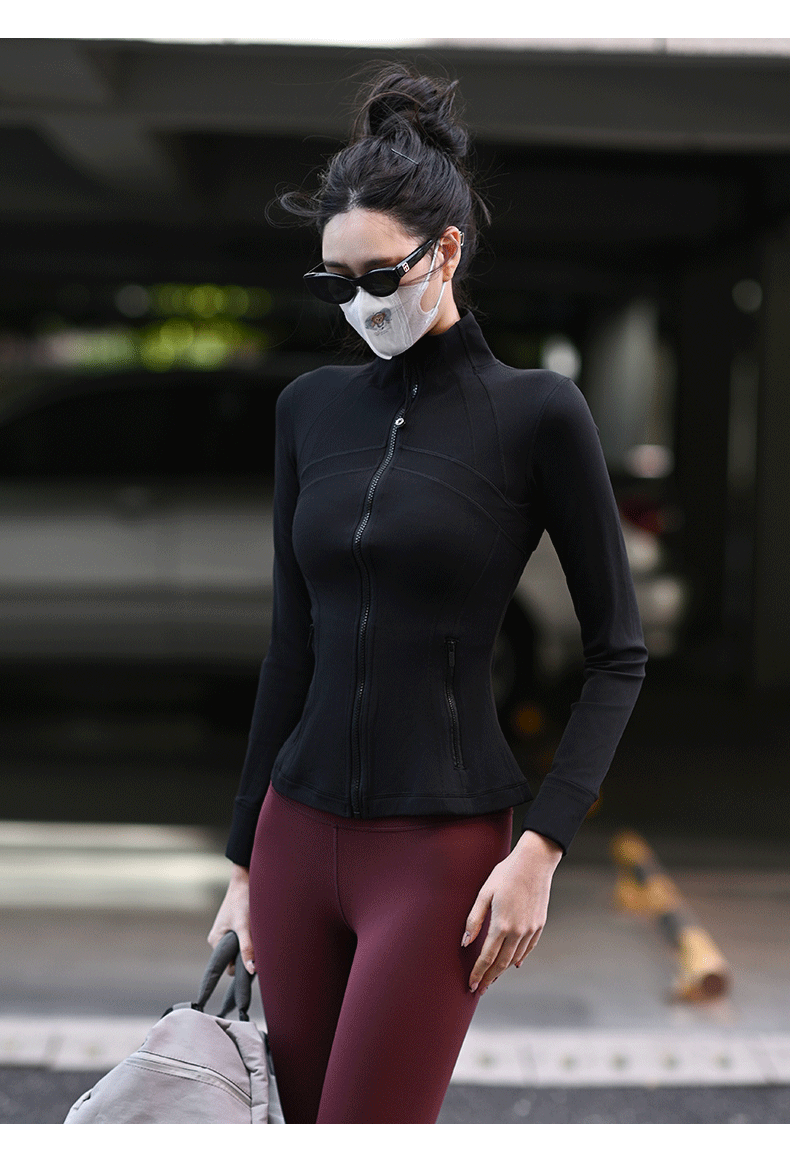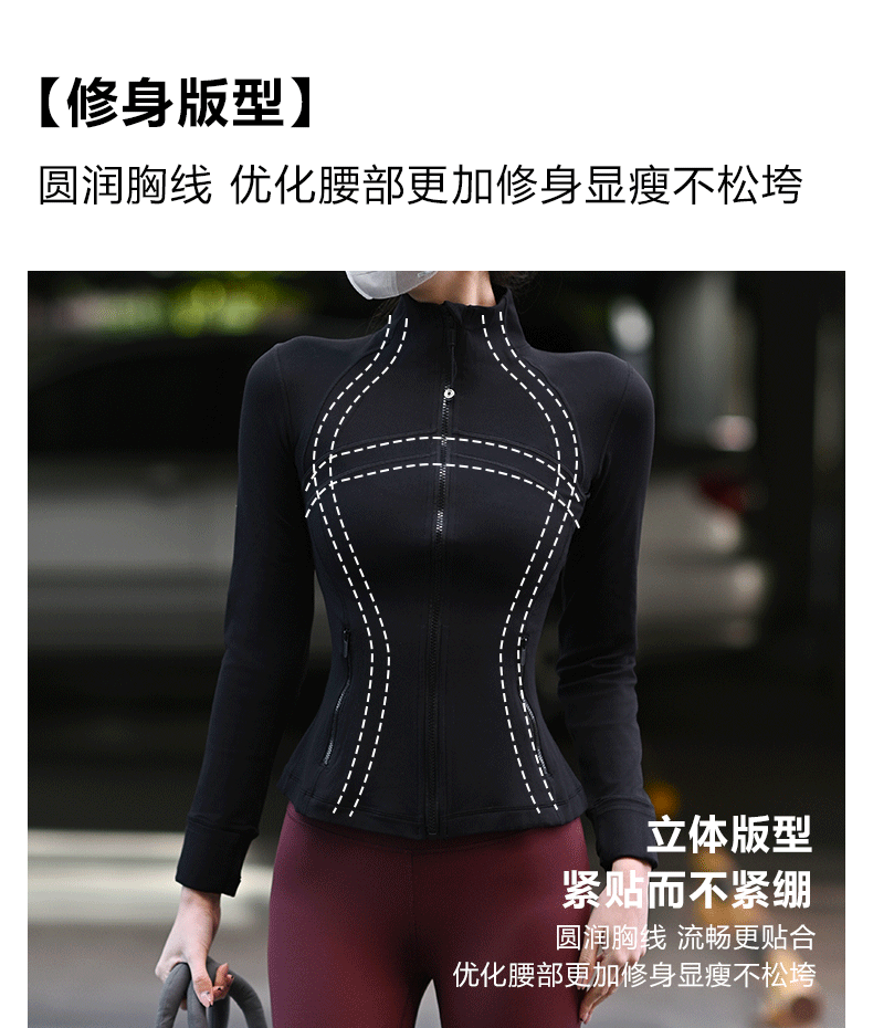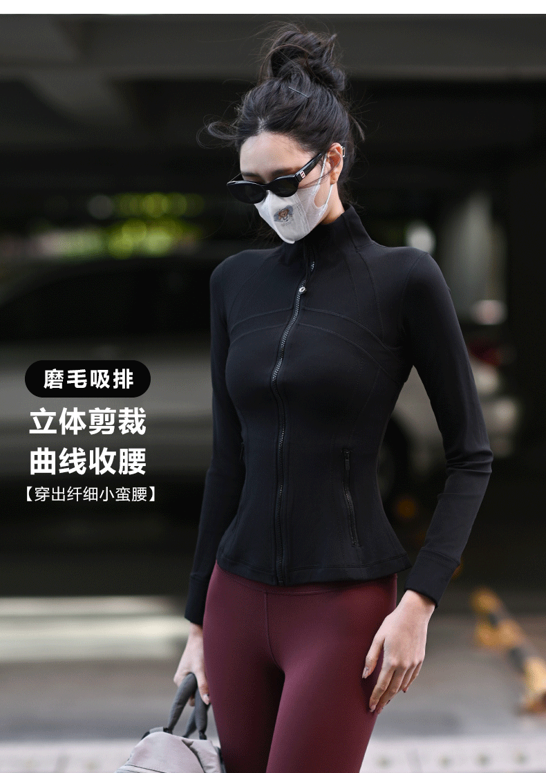 Beemen瑜伽服带口袋外套女 立领拉链磨毛裸感 弹力修身健身运动长袖外套