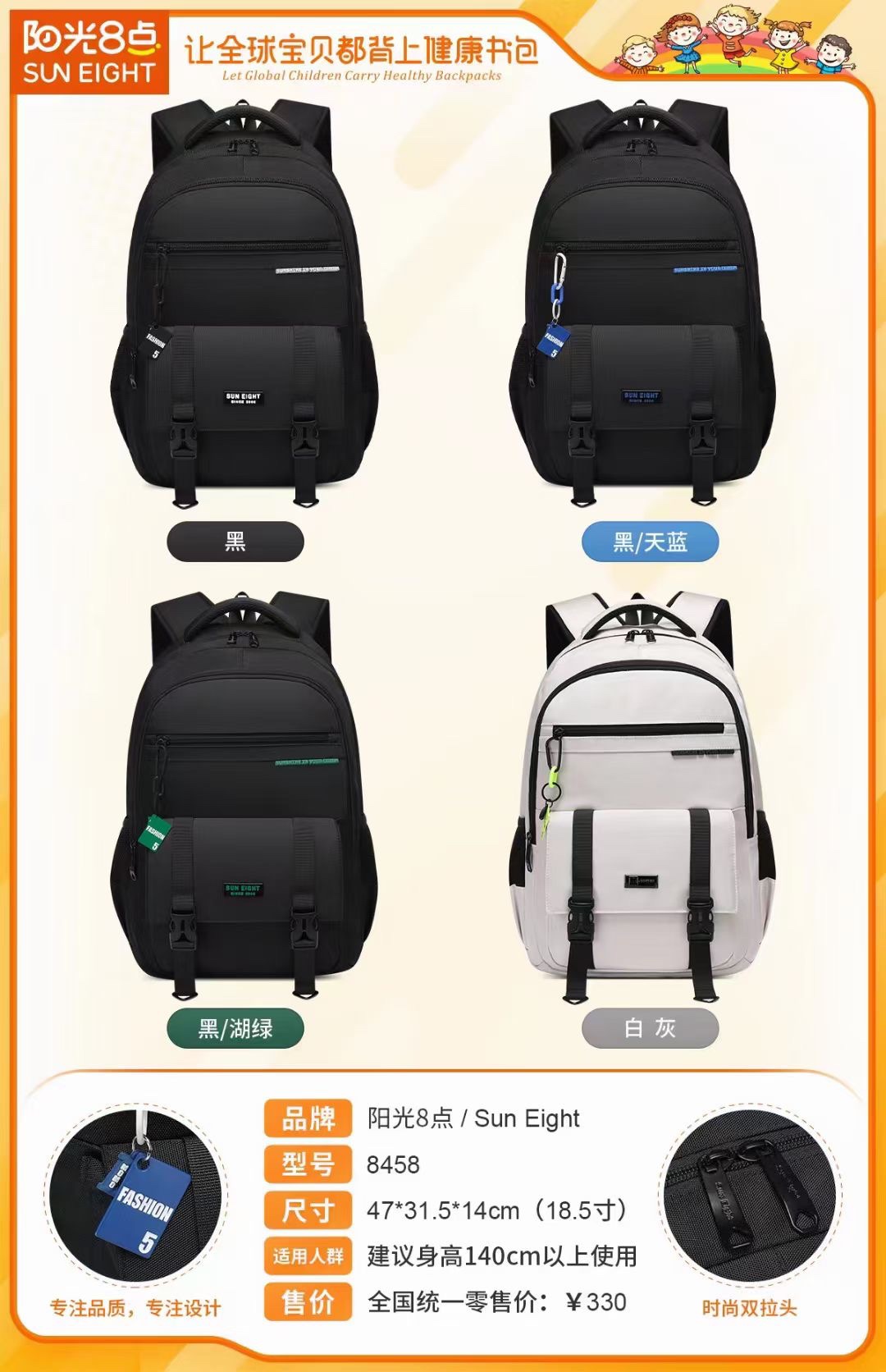 阳光8点四季8458大童大背囊G230630