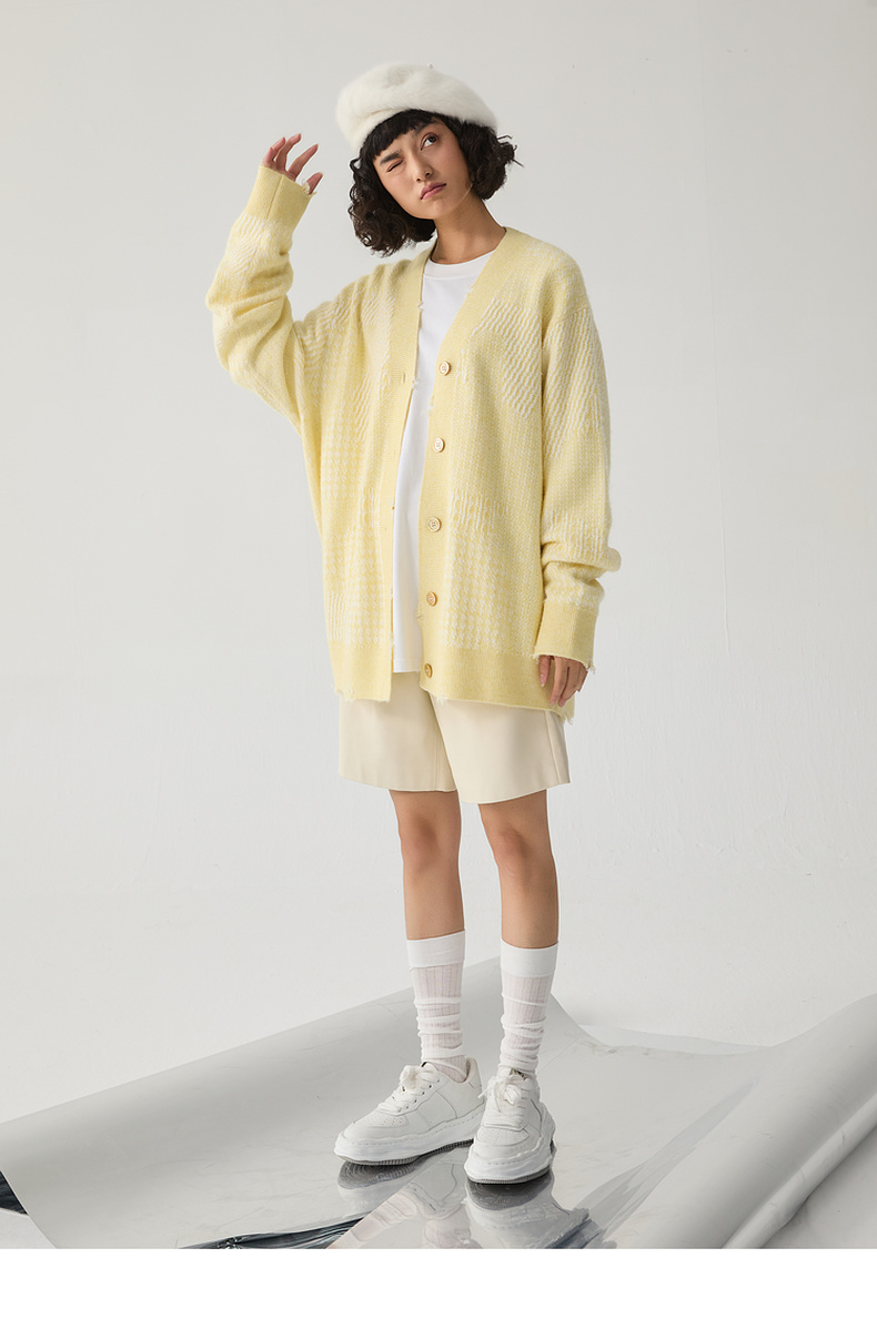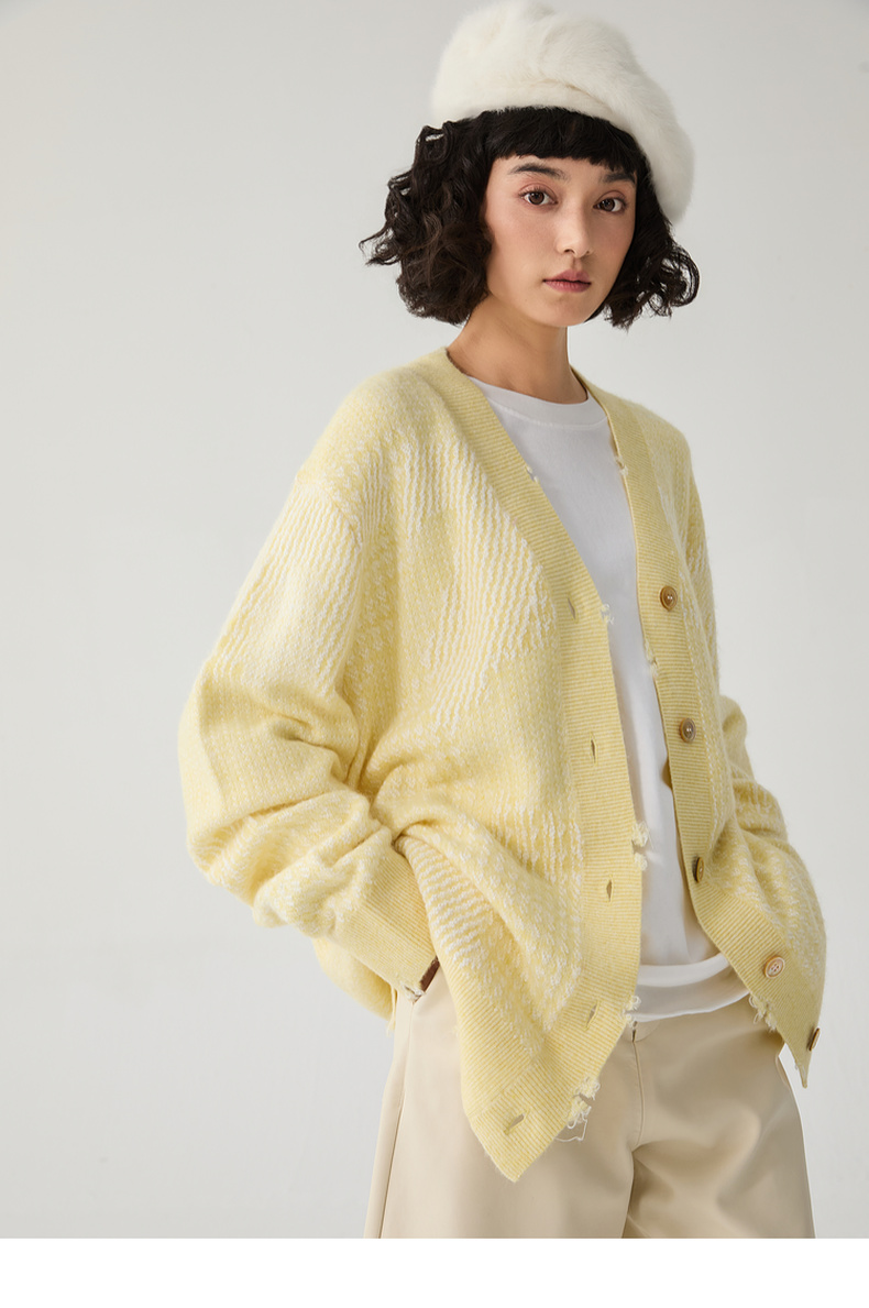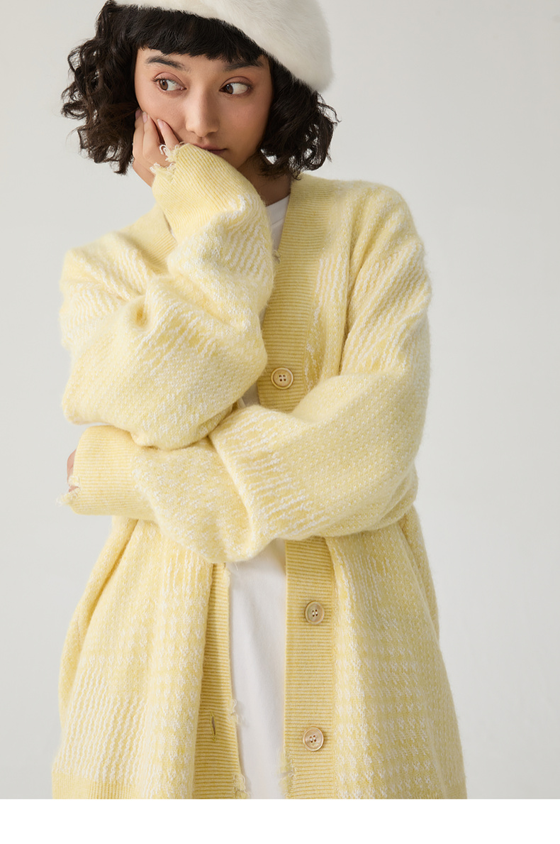 谜底针织开衫女2024冬季新品极简风V领中长款毛衣外头244MZ1875