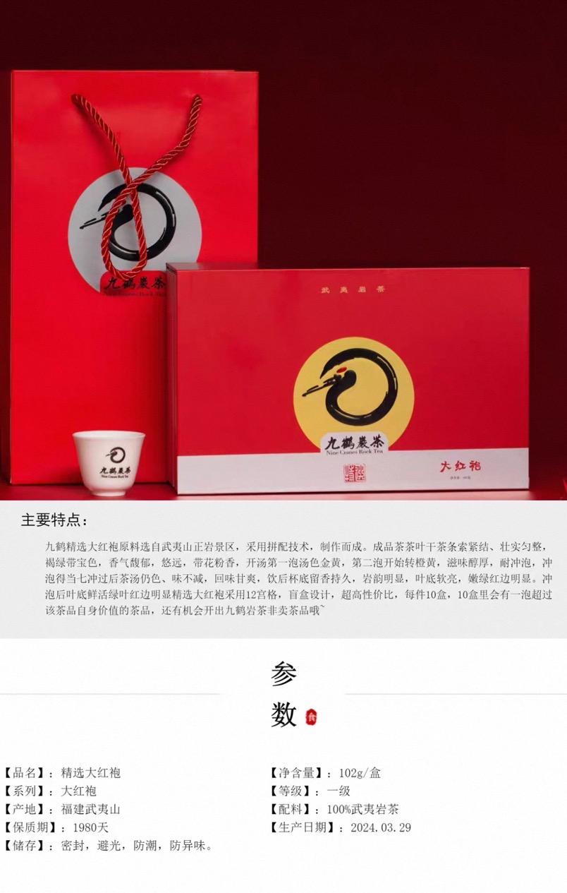 【自营】九鹤岩茶 精选武夷正岩 大红袍102g礼盒装