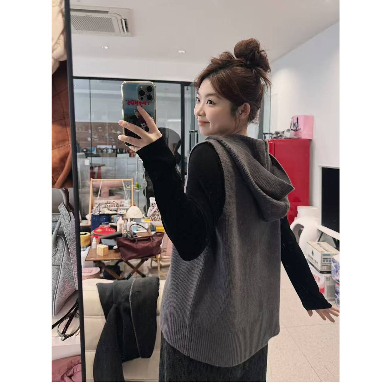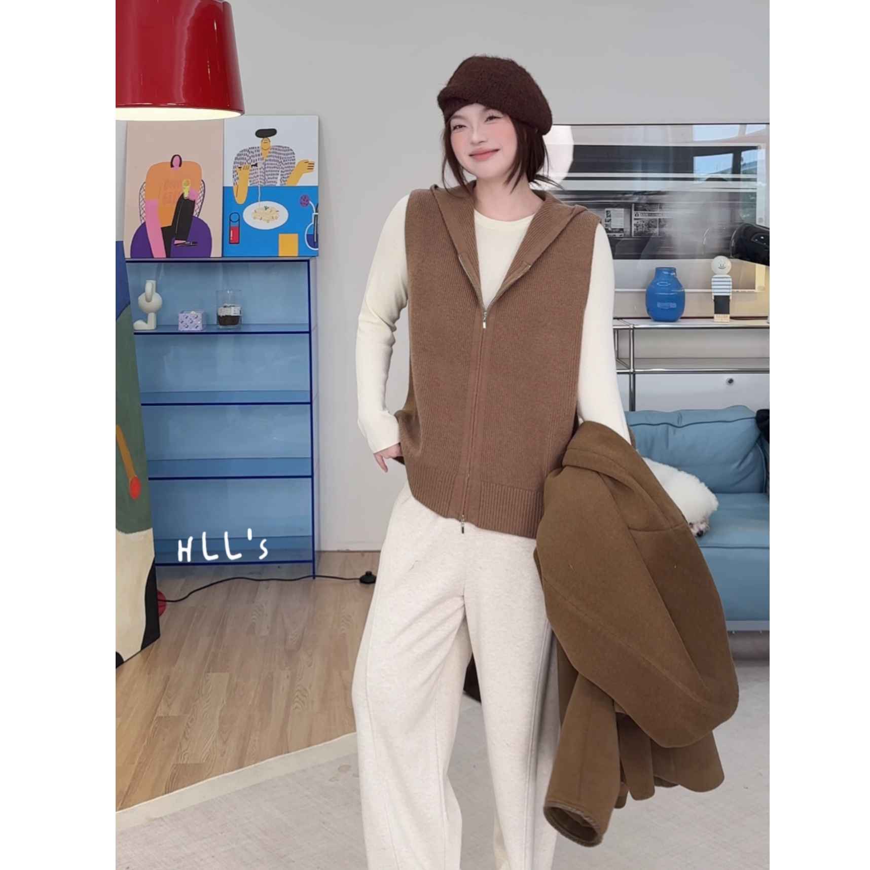 25AW上新【现货折上95折】 蕾蕾同款【叠穿神助攻】时尚双头拉链连帽无袖针织马甲上衣