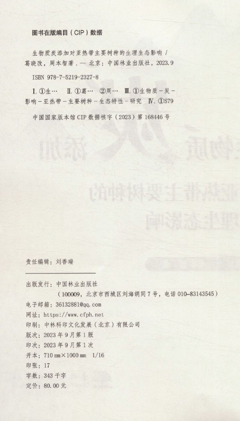生物质炭添加对亚热带主要树种的生理生态影响 &2327