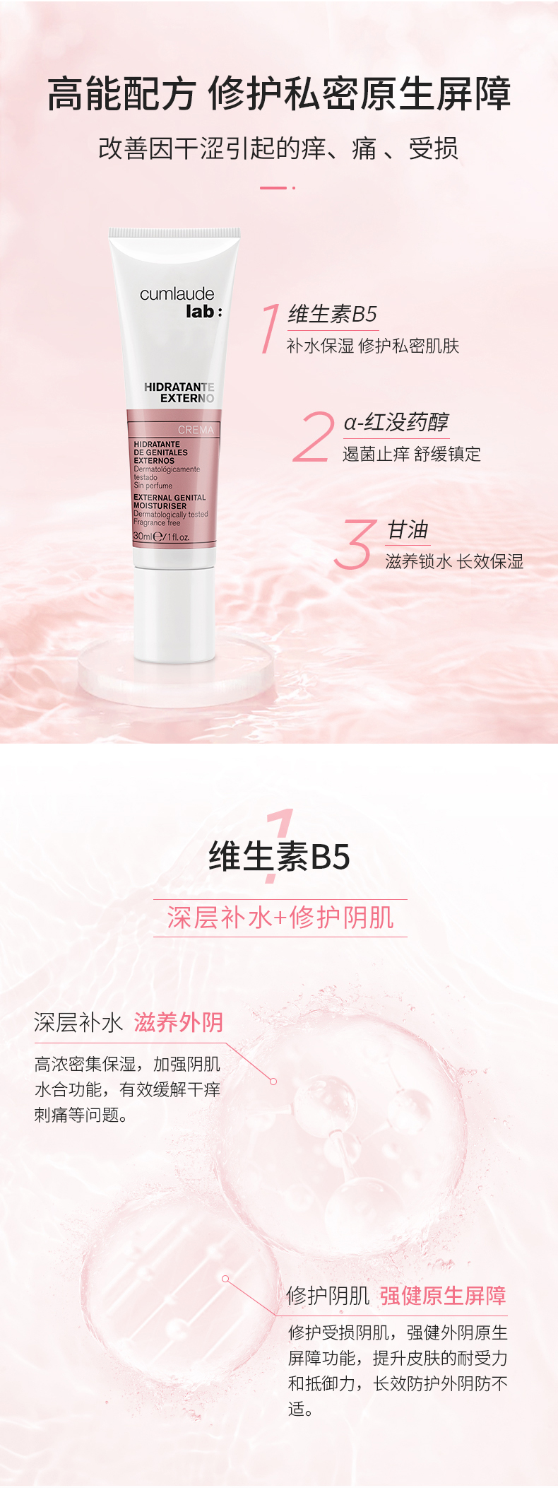 Cumlaude珂蔓朵 B5私密处保湿霜 30ml 极致水润 长效防护