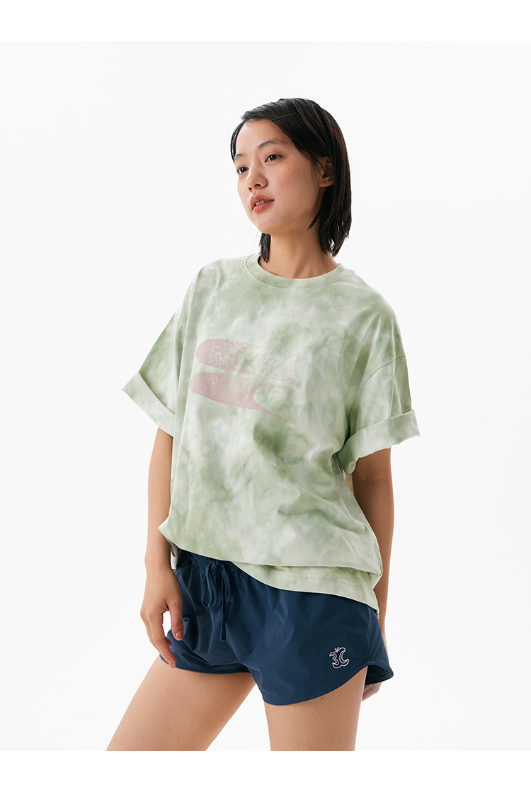 Crying Center 做旧logo扎染短袖T恤 宽松情侣圆领哭喊中心