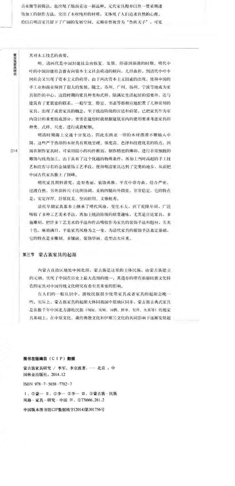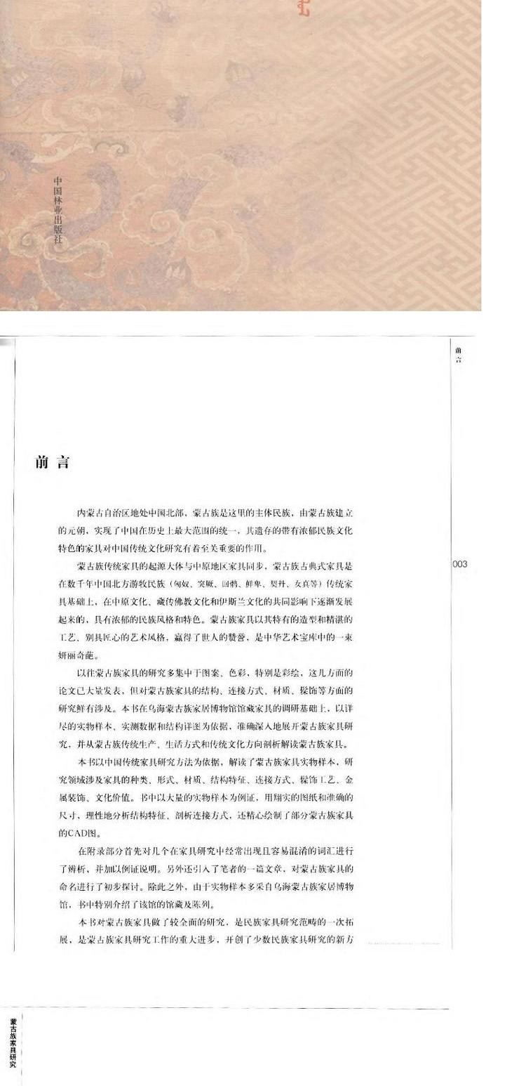 蒙古族家具研究 中国林业出版社7782