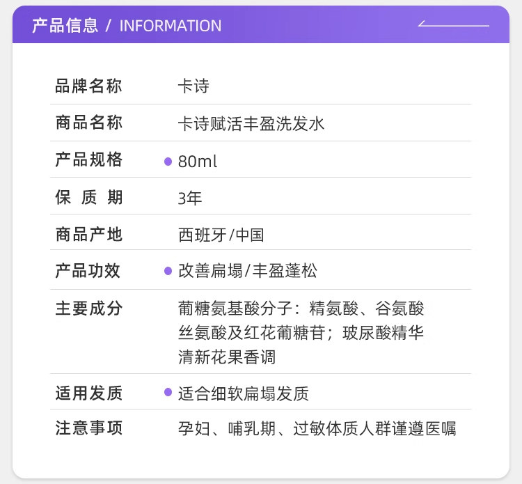 【旅行装】巴黎卡诗 白金赋活洗发水 80ml 小样