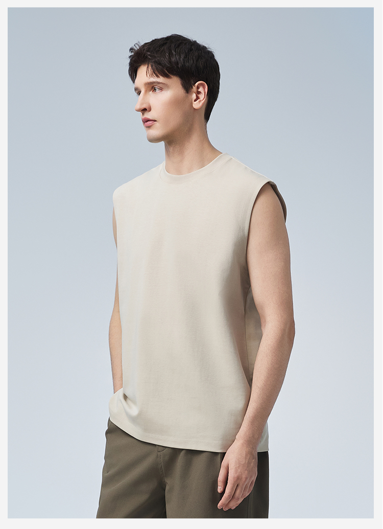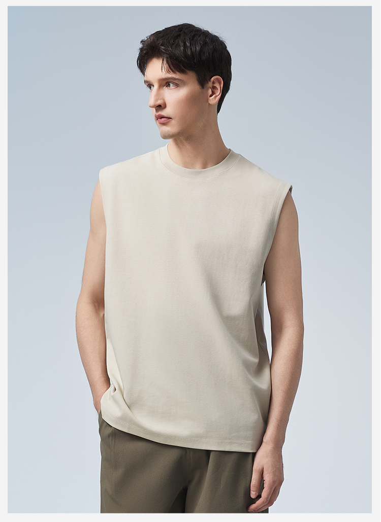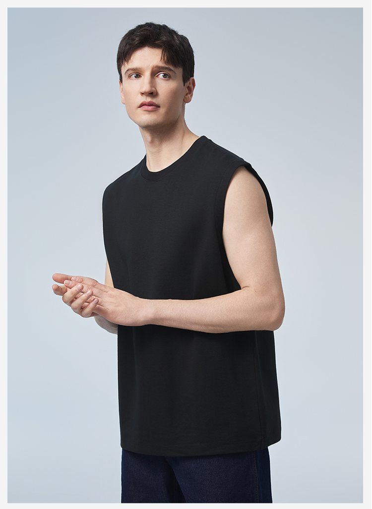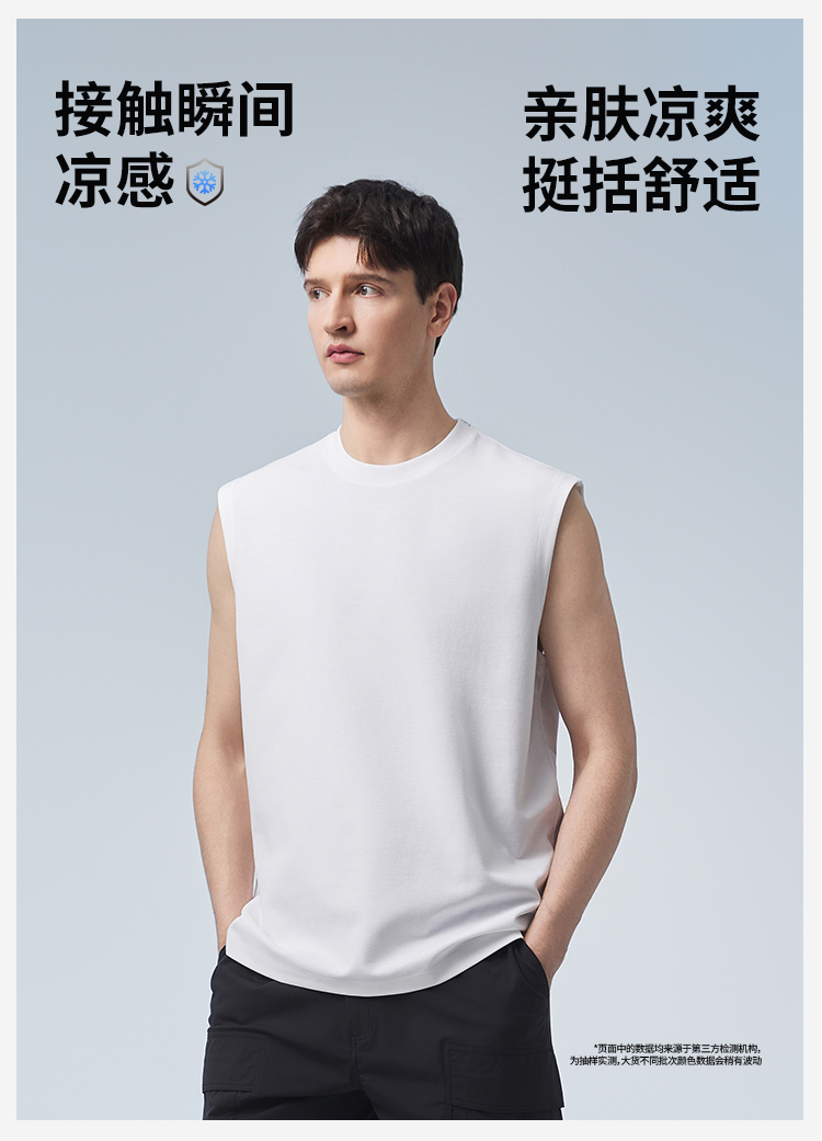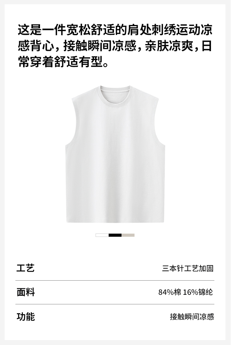 拇指白小T肩处刺绣运动凉感背心无限系列