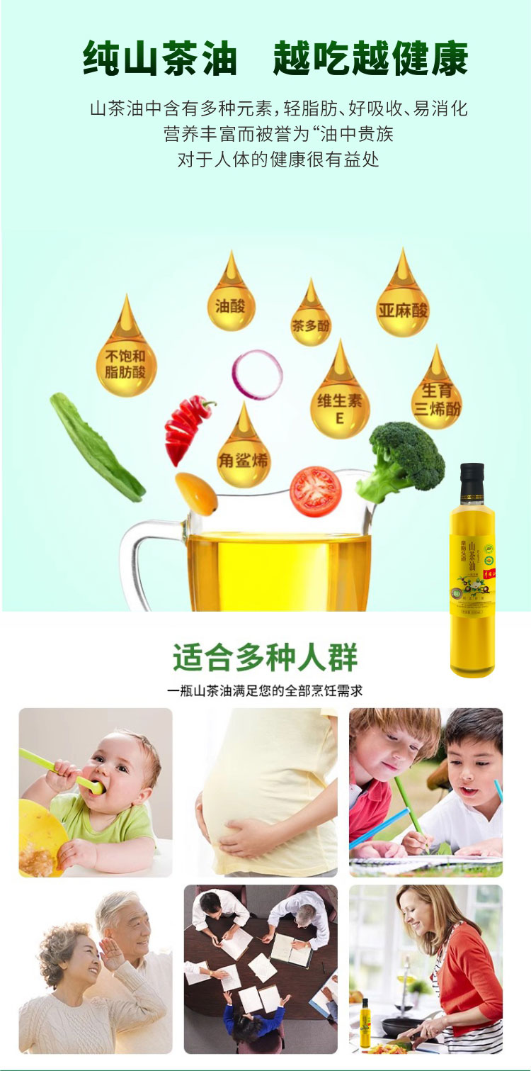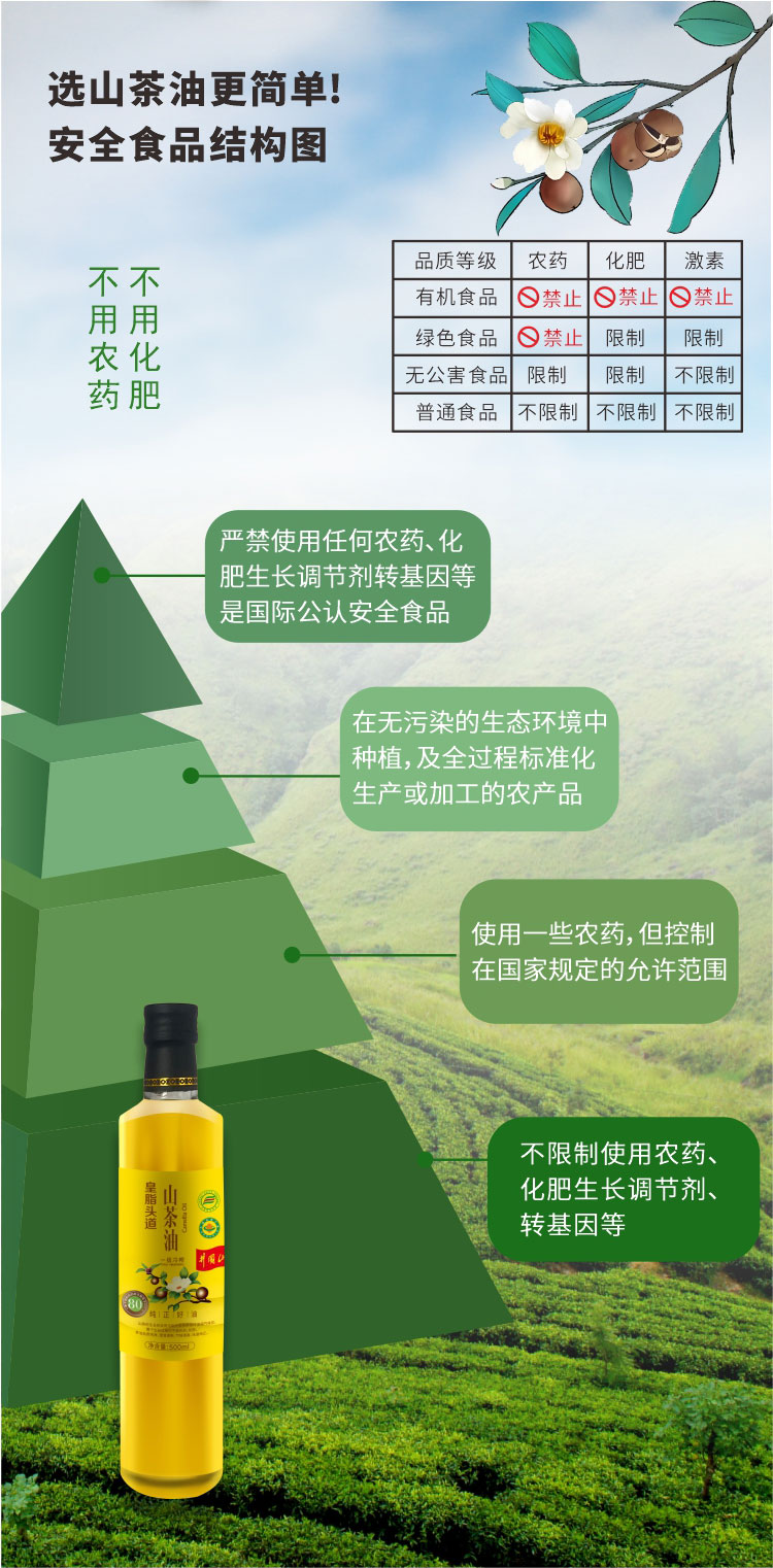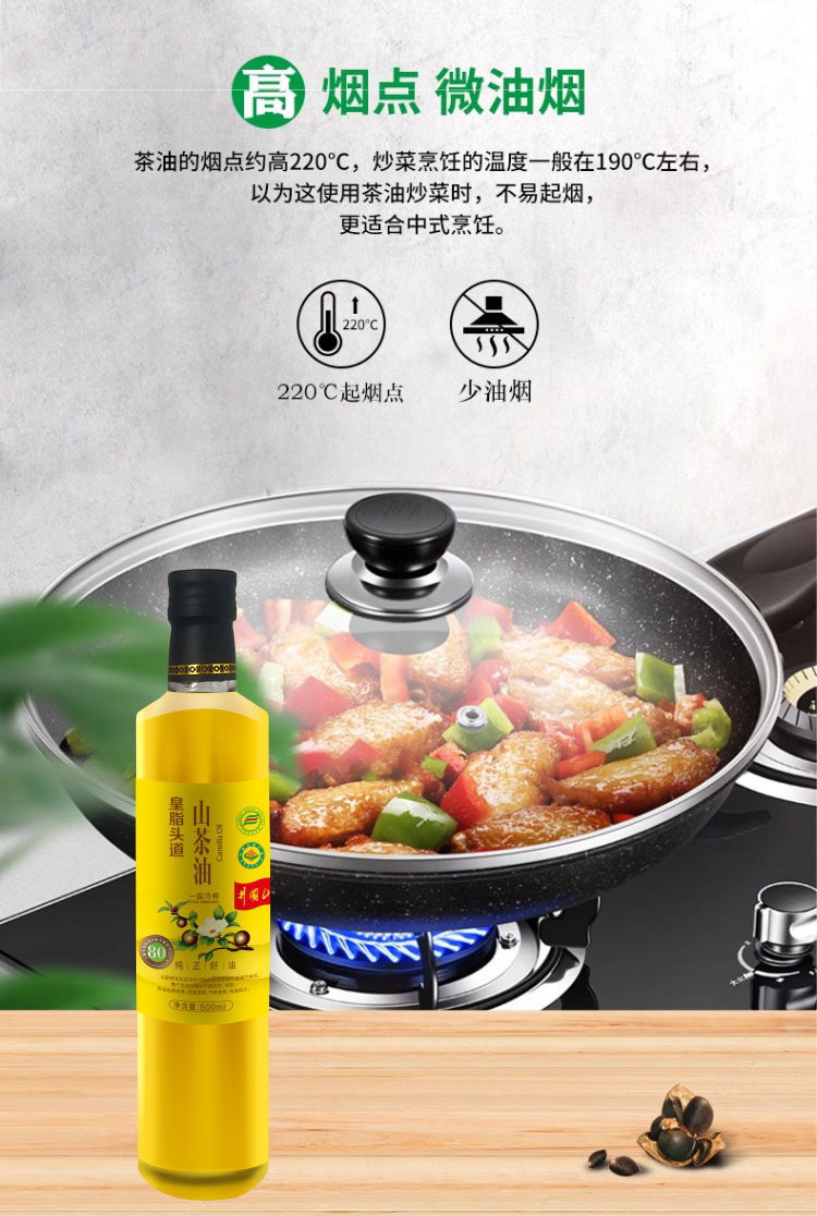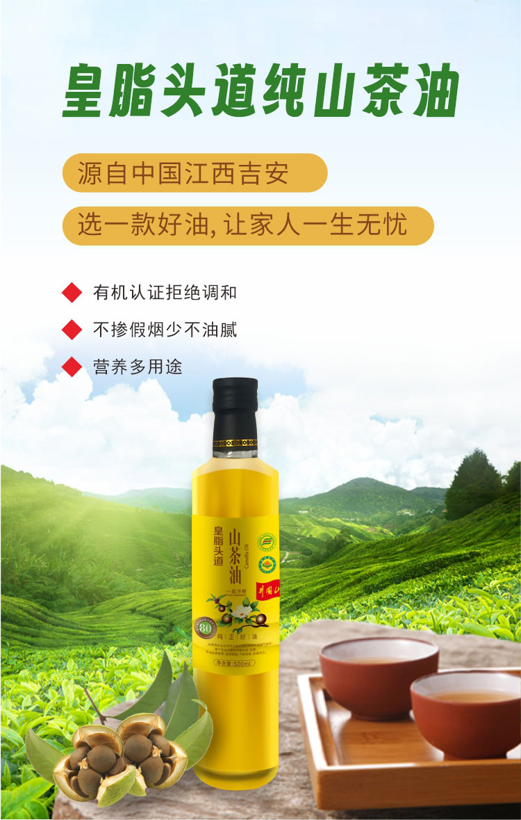 【一乐专属】皇脂头道 Y01有机山茶油 一级物理压榨 天然纯正食用油500ml*瓶