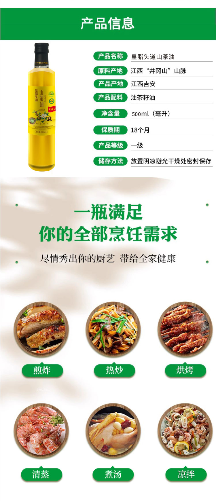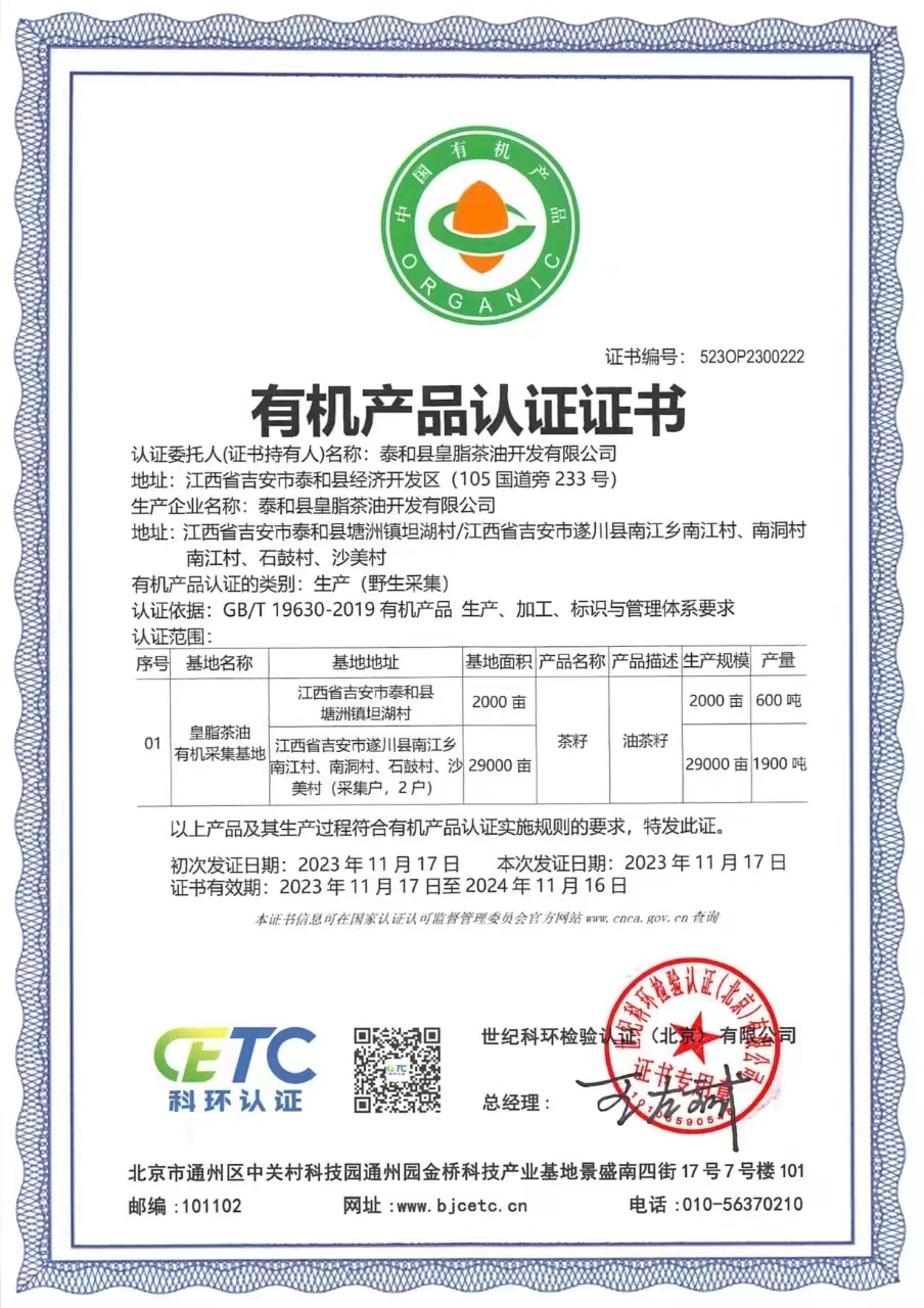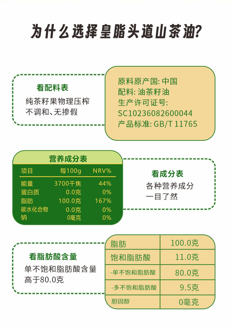 【一乐专属】皇脂头道 Y01有机山茶油 一级物理压榨 天然纯正食用油500ml*瓶