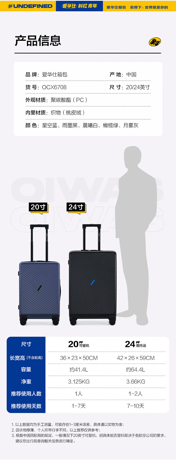爱华仕 磨砂斜杠行李箱20寸 OCX6708-20