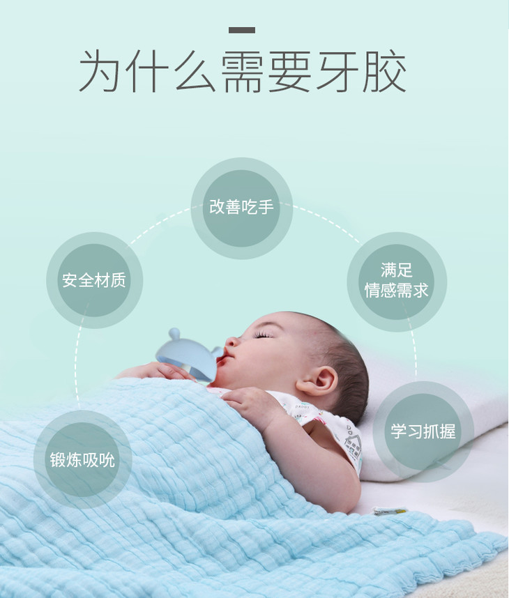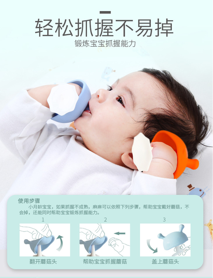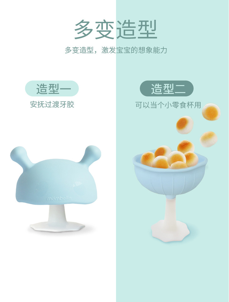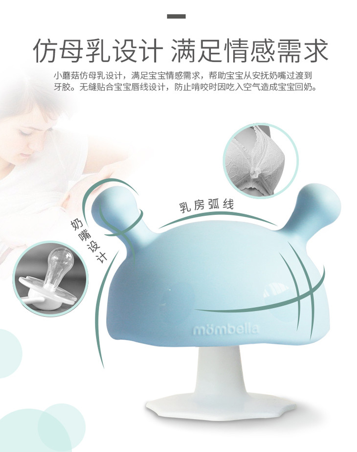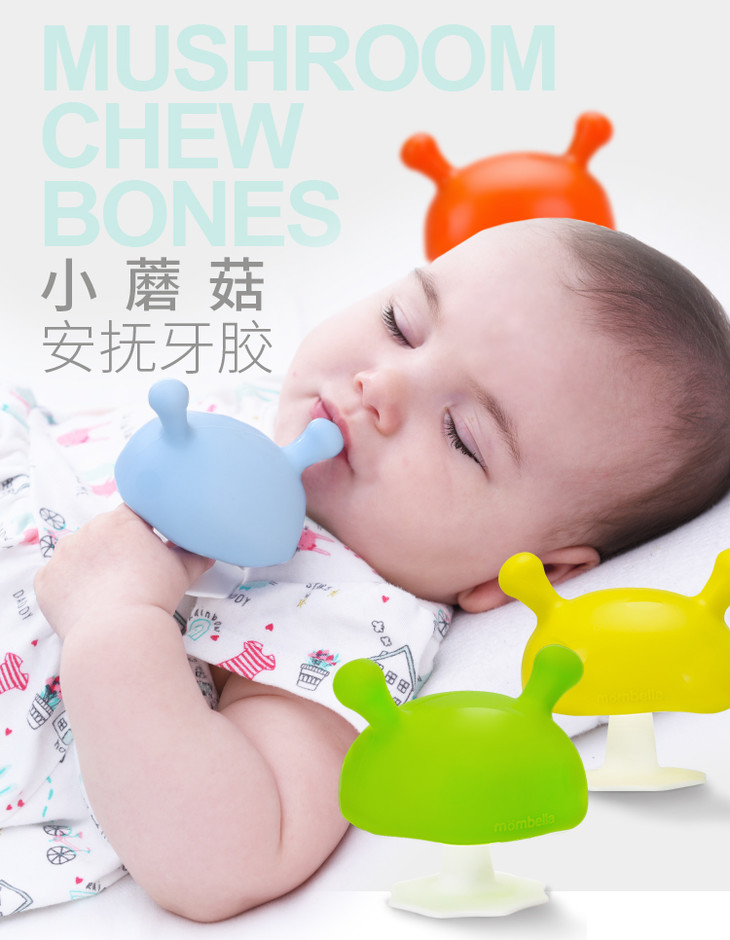 美国Mömbella妈贝乐小蘑菇安抚牙胶防吃手磨牙棒婴儿宝宝可水煮