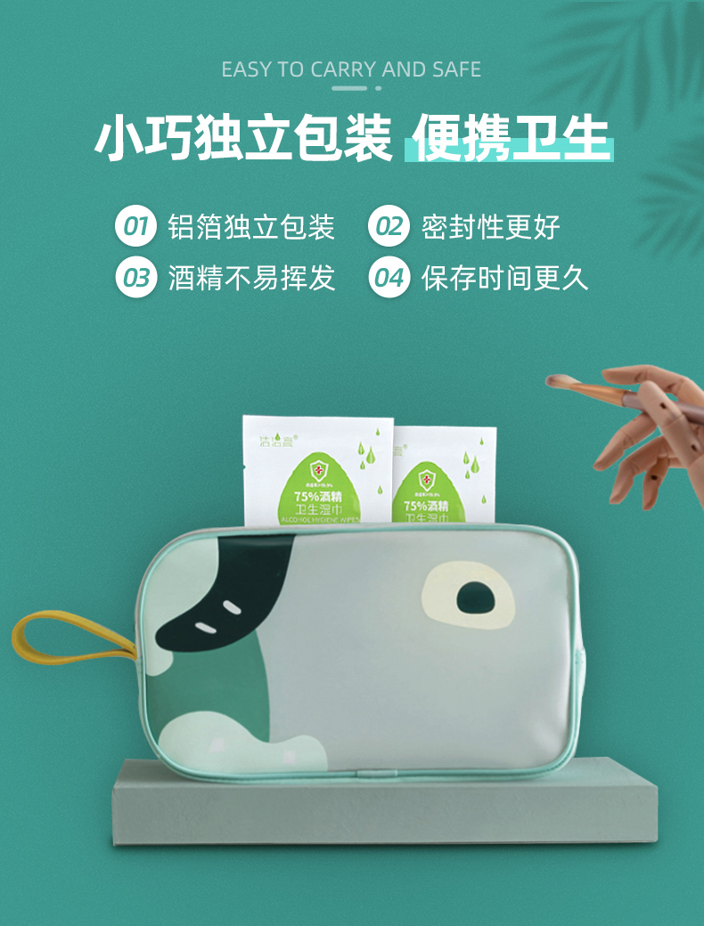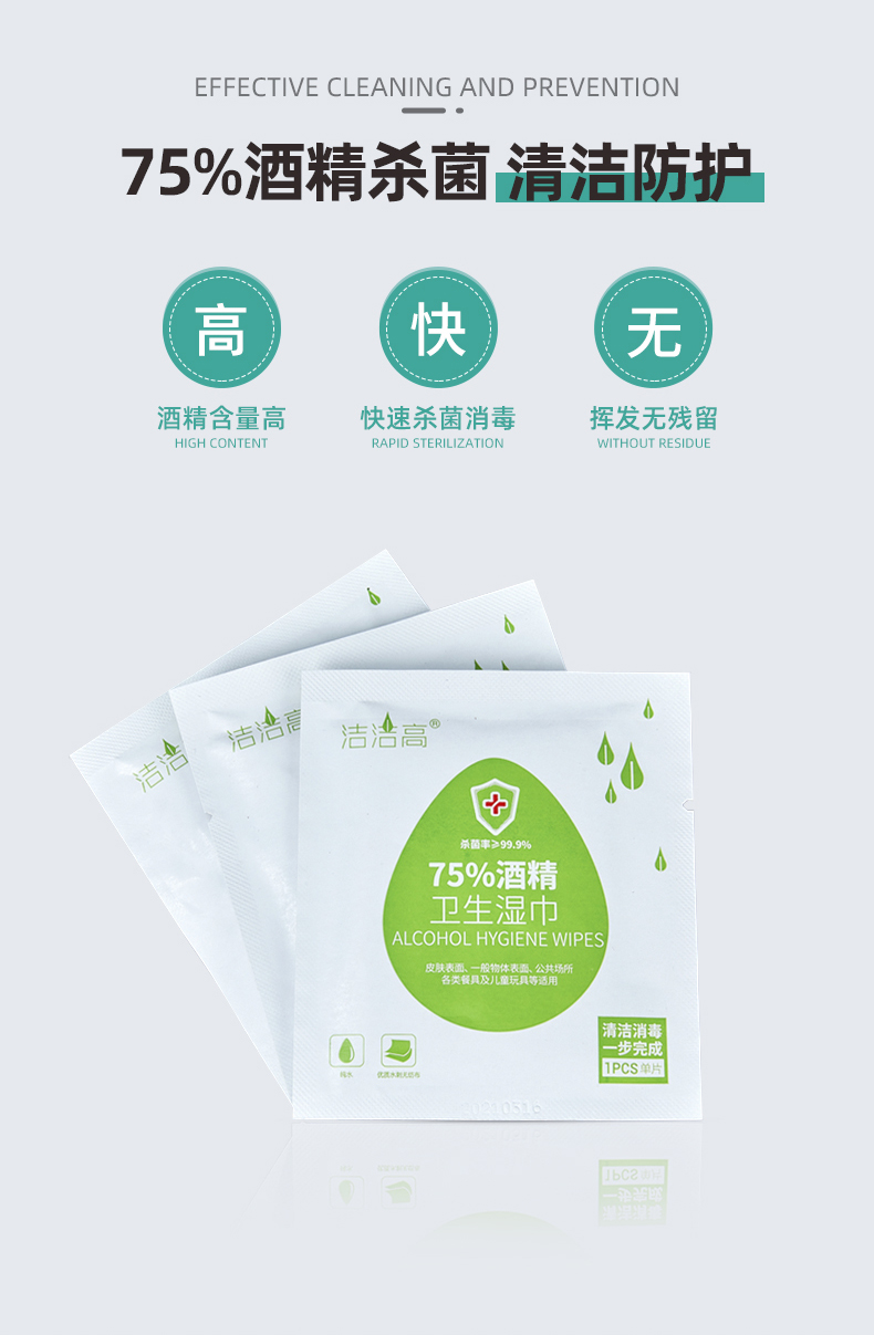 洁洁高 75%酒精医用消毒湿巾 单独包装杀菌专用小包便携湿纸巾独立装婴儿 50片装
