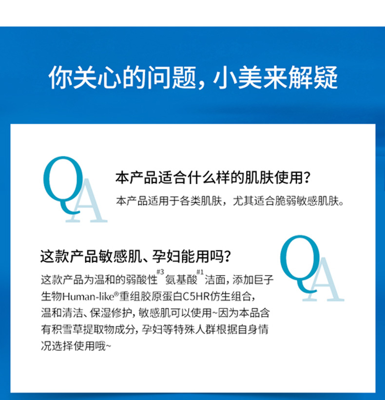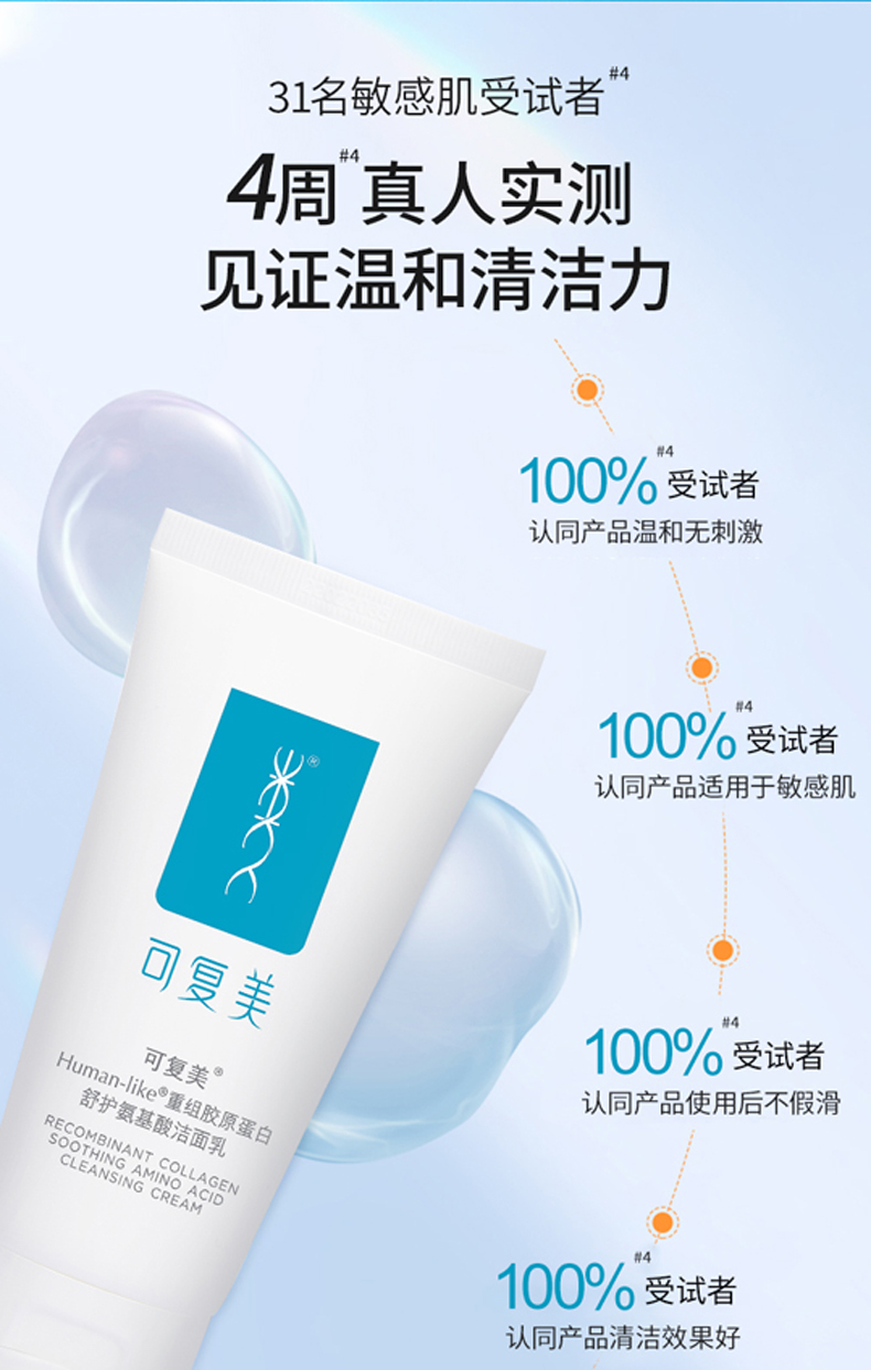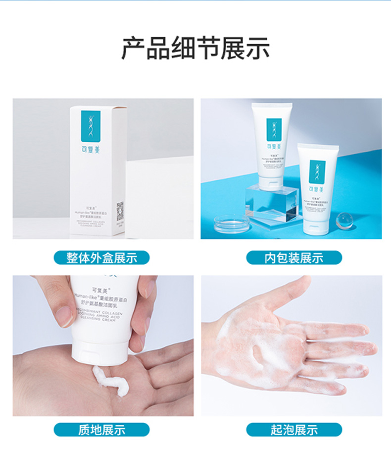 可复美 Human-like重组胶原蛋白舒护氨基酸洁面乳120g 控油男女洗面奶 深层清洁补水保湿 心选到家