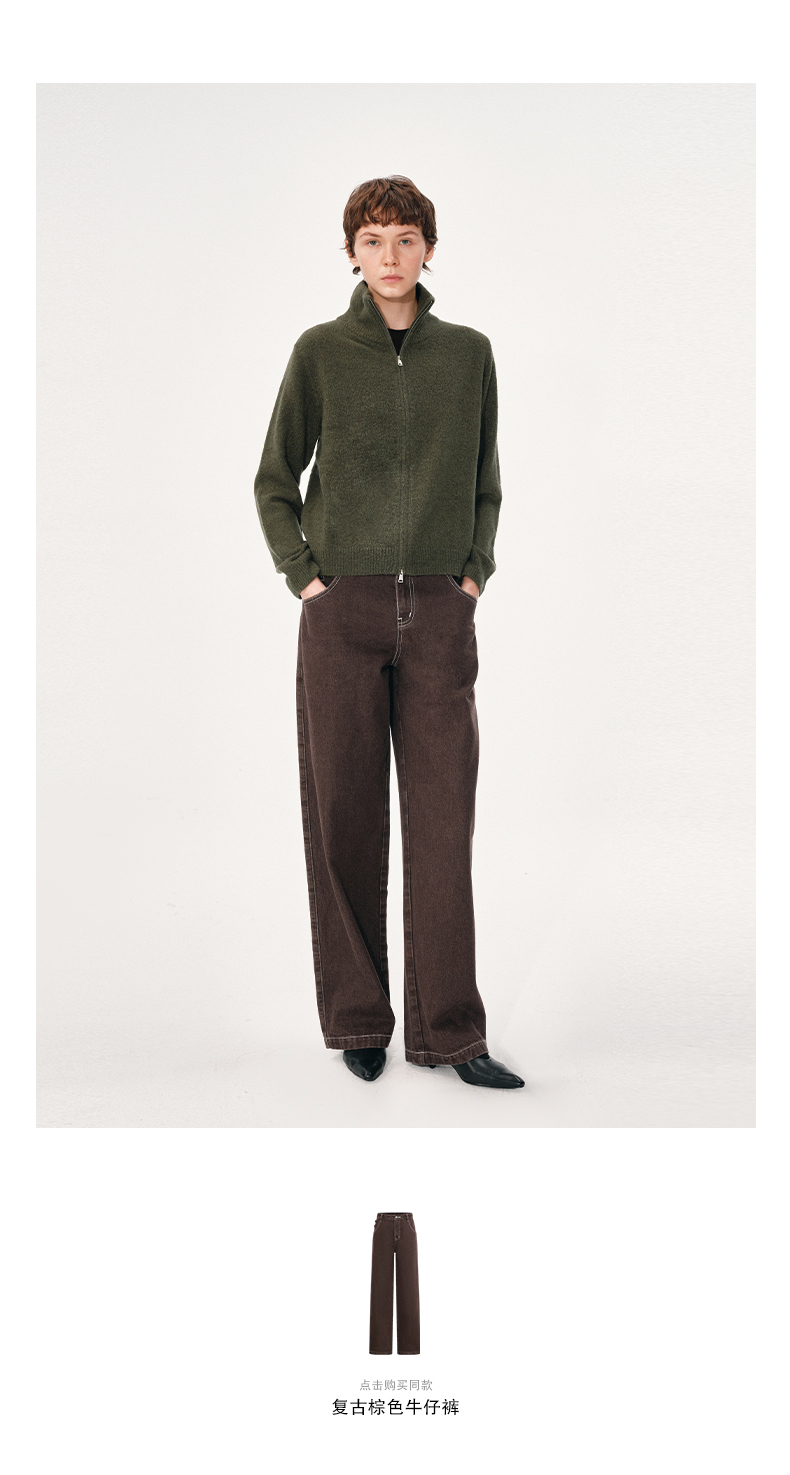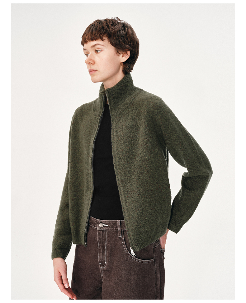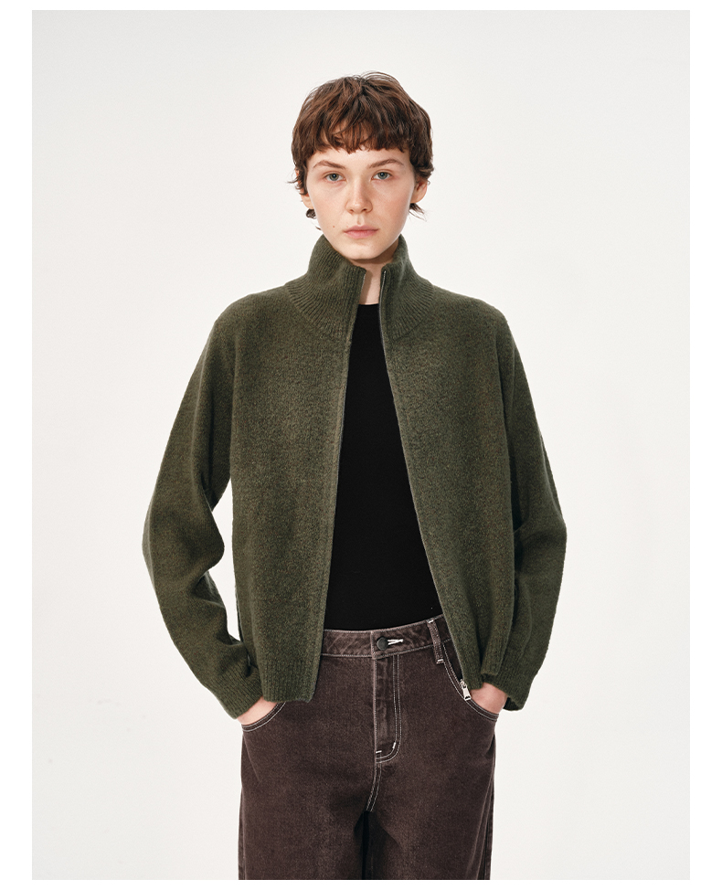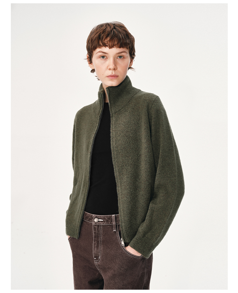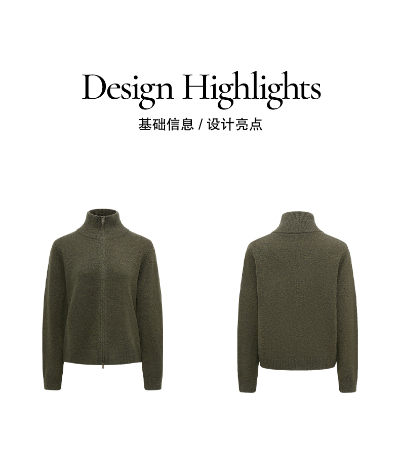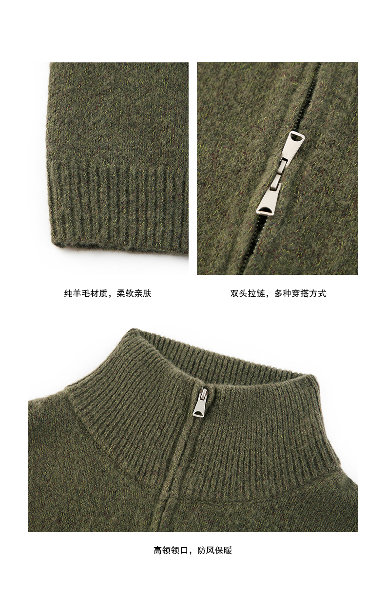 NUTH100%羊毛高领双头拉链针织毛衣开衫女 绿色(发货时间同步天猫)
