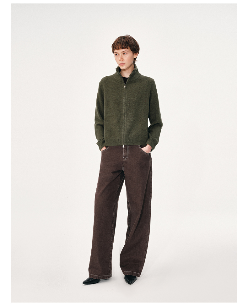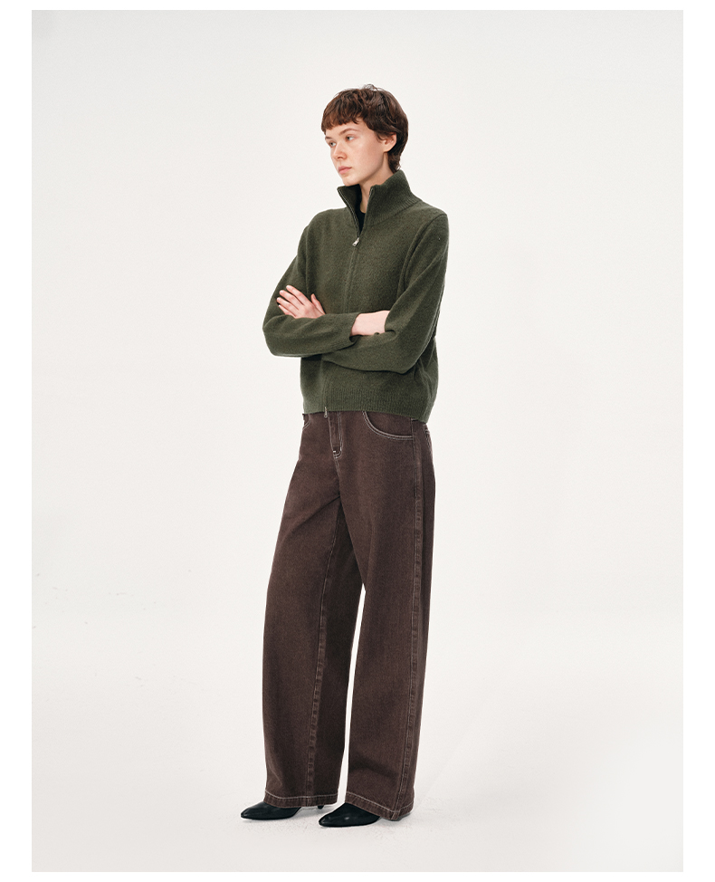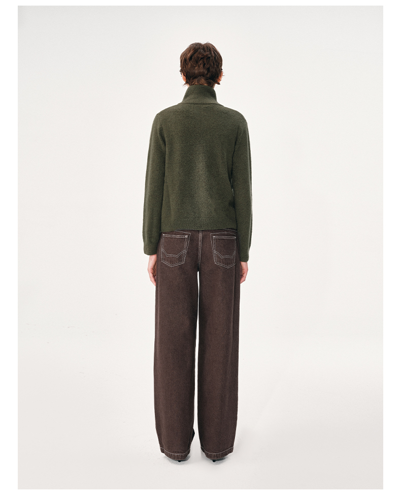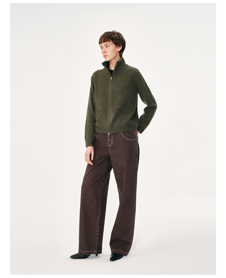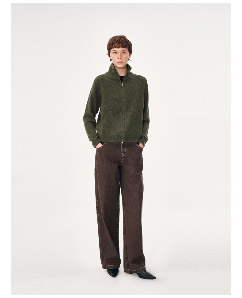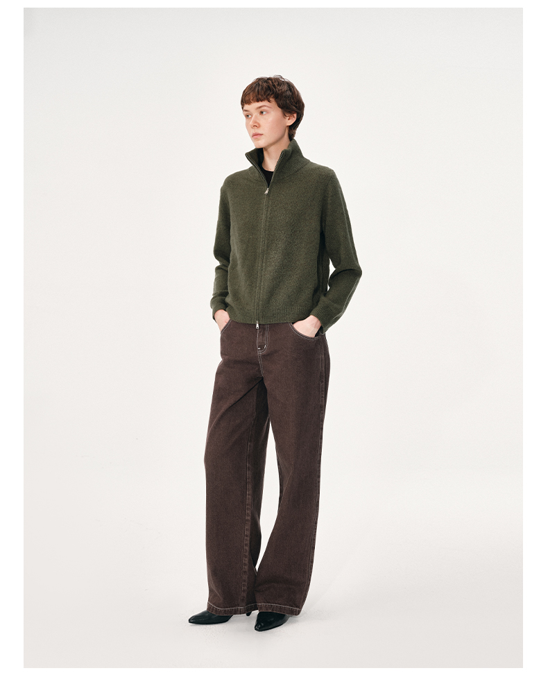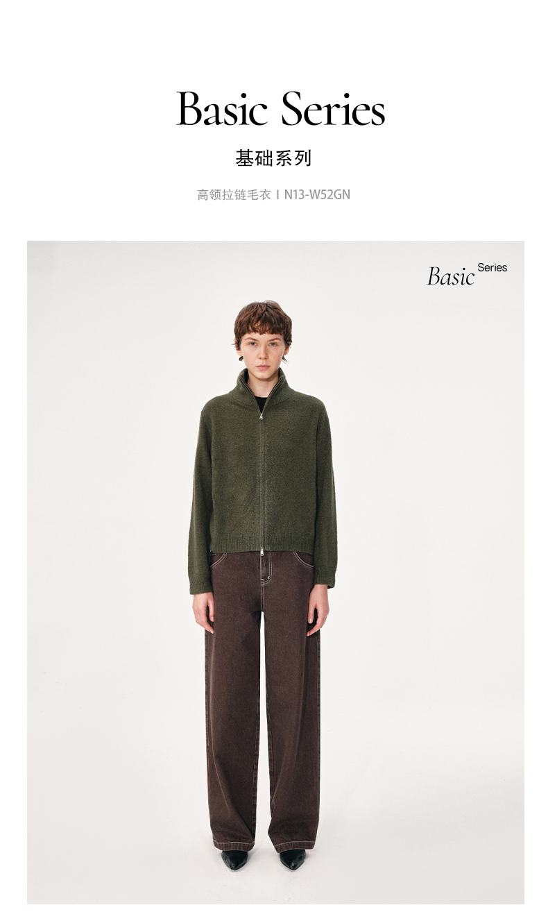 NUTH100%羊毛高领双头拉链针织毛衣开衫女 绿色(发货时间同步天猫)