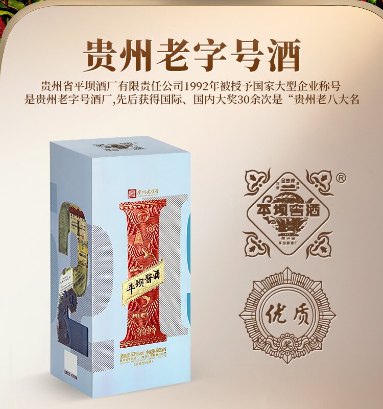 贵州平坝 1952 酱香型 53度 500ml*4整箱装
