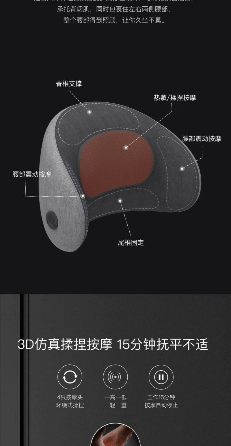 三和松石(shss) 按摩靠垫颈部背部腰部 V40 灰色