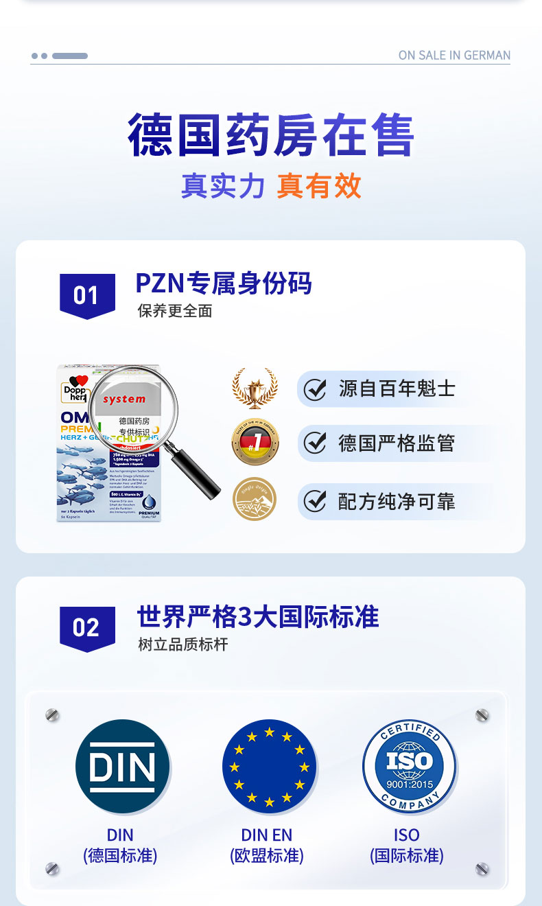 【礼想心动】Doppel Herz 双心 rTG高浓度钻石深海鱼油omega3 1500DHA中老年成人软胶囊60粒
