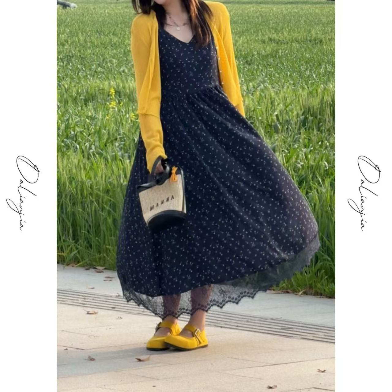 2025新品 佳佳同款【蔚蓝风铃】小碎花蕾丝吊带长裙薄款舒适大码宽松印花无袖