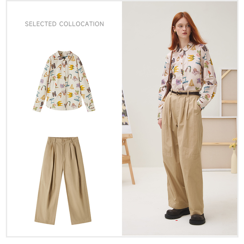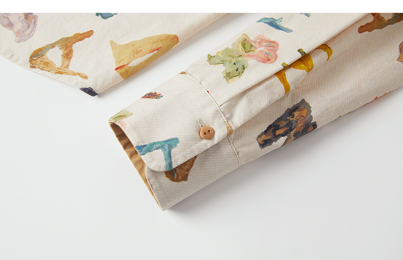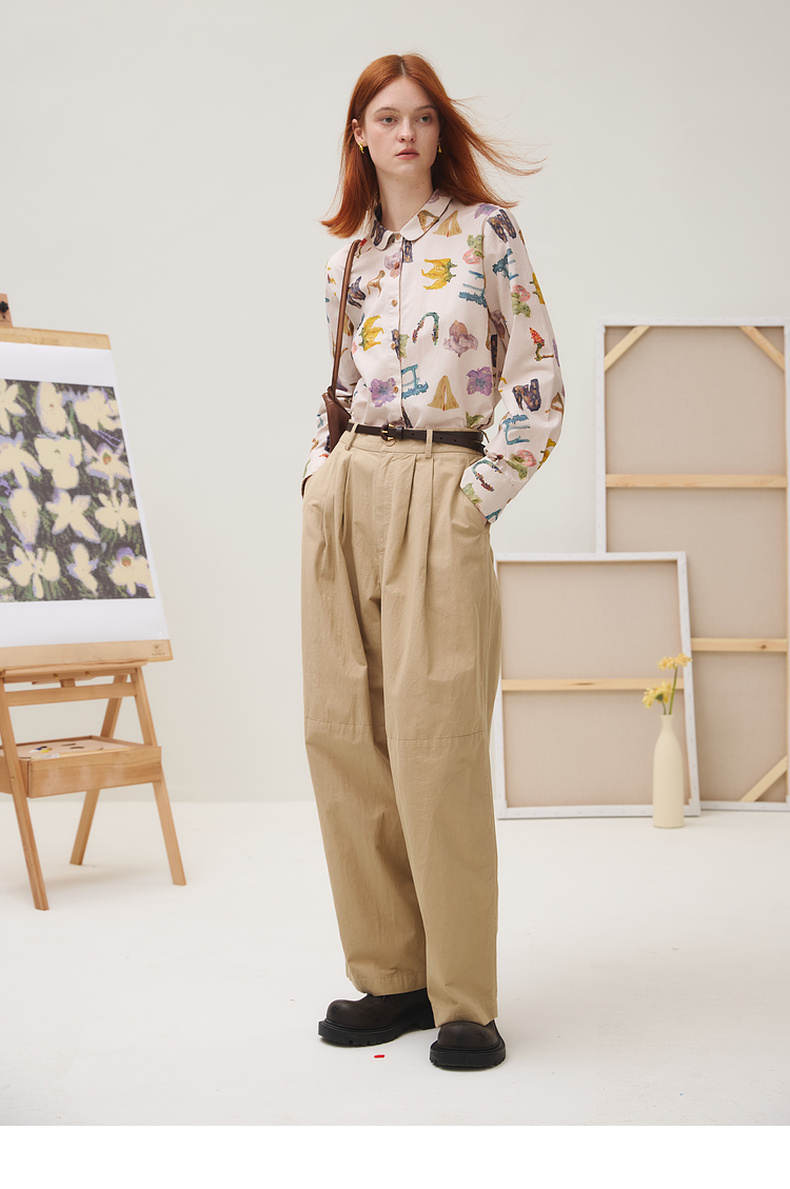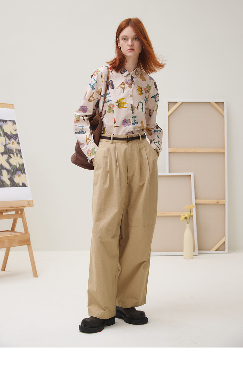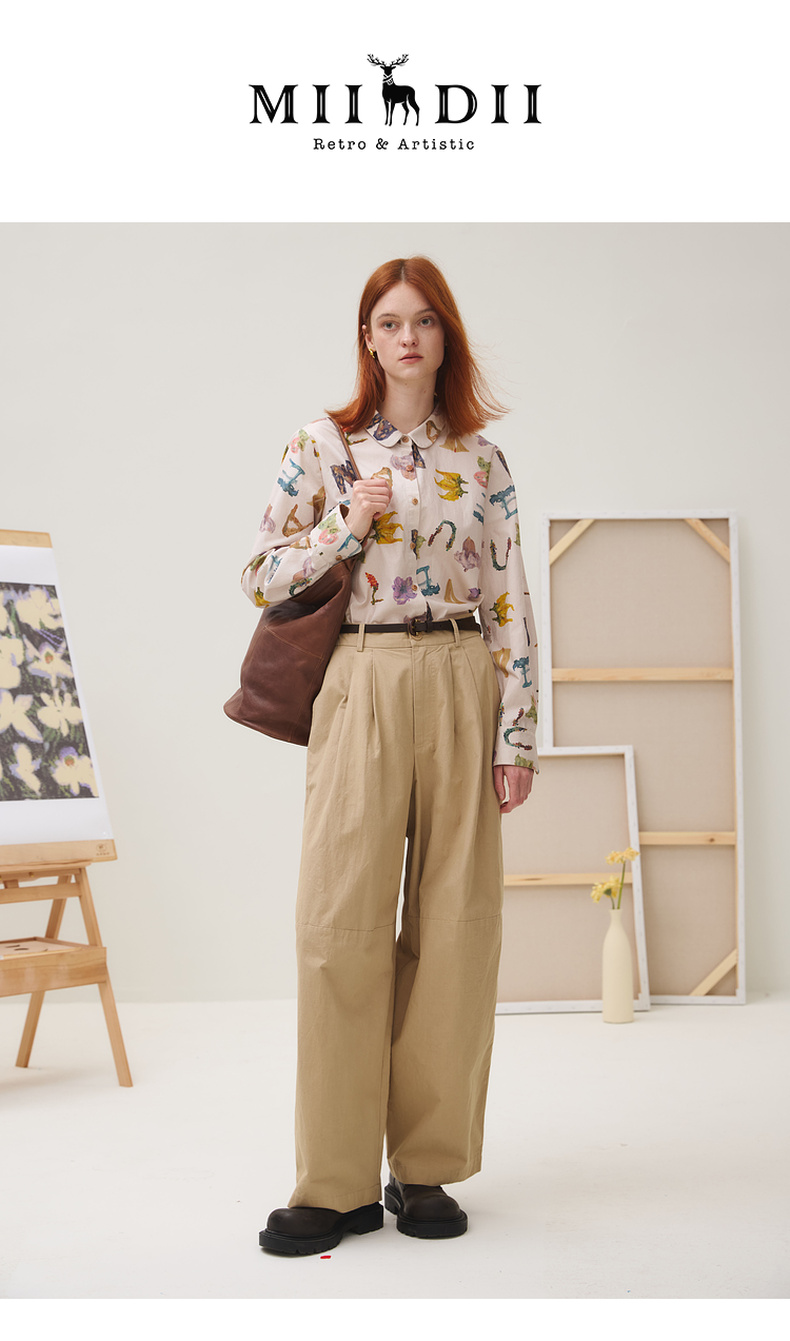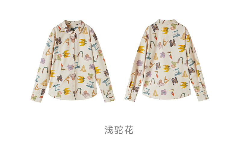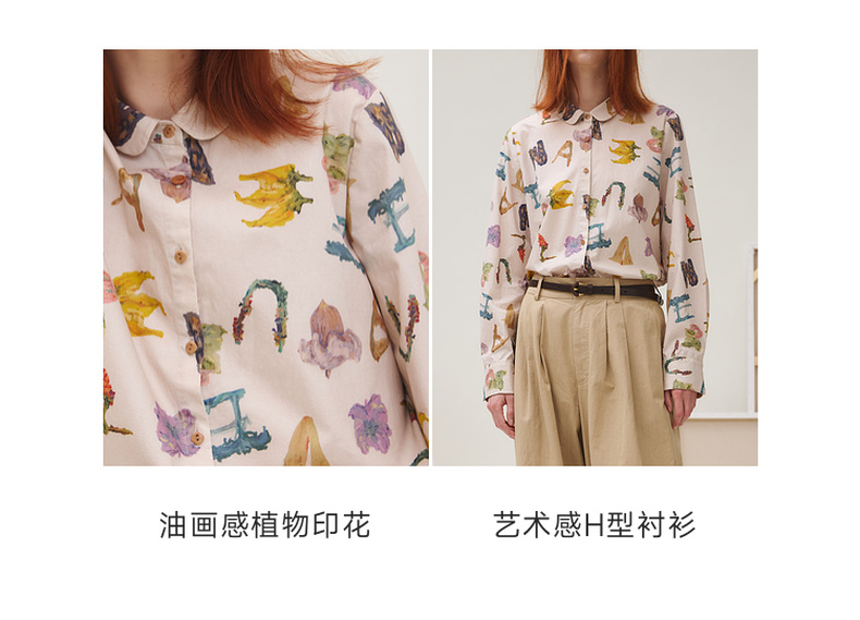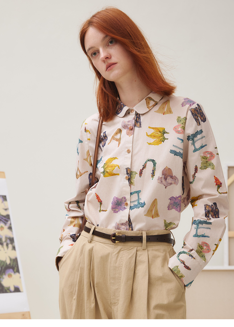 谜底衬衣长袖女2025秋新品复古通勤油画感花卉印花衬衫253MC1096