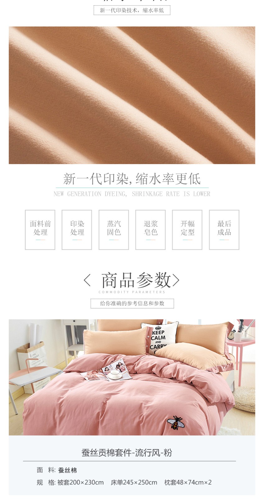 金丝莉(KINTHERI) 蚕丝贡棉四件套 流行风·粉