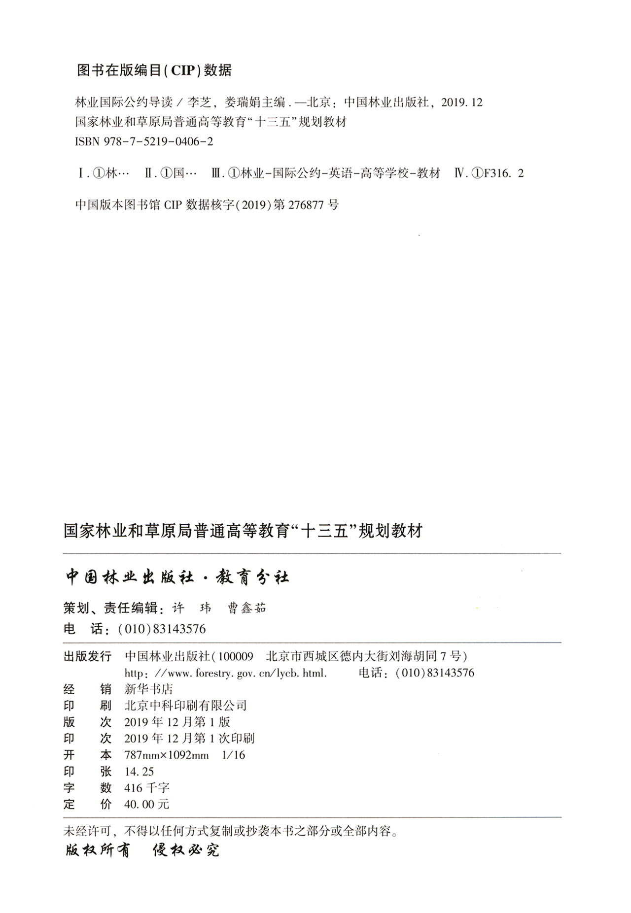 正版包邮 林业国际公约导读 李芝//娄瑞娟 (国家林业和草原局普通高等教育十三五规划教材) 0406 中国林业出版社