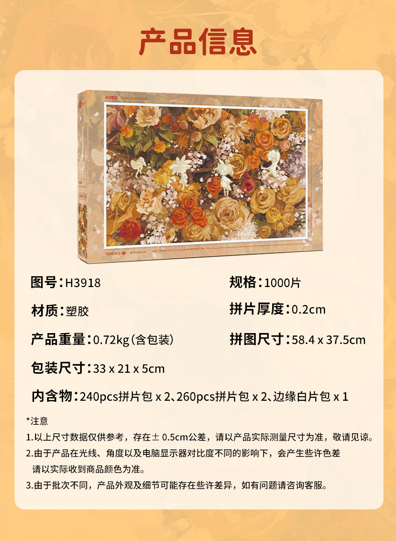 1000片 平面塑料拼图 H3918 东隆咚-干花中的精灵