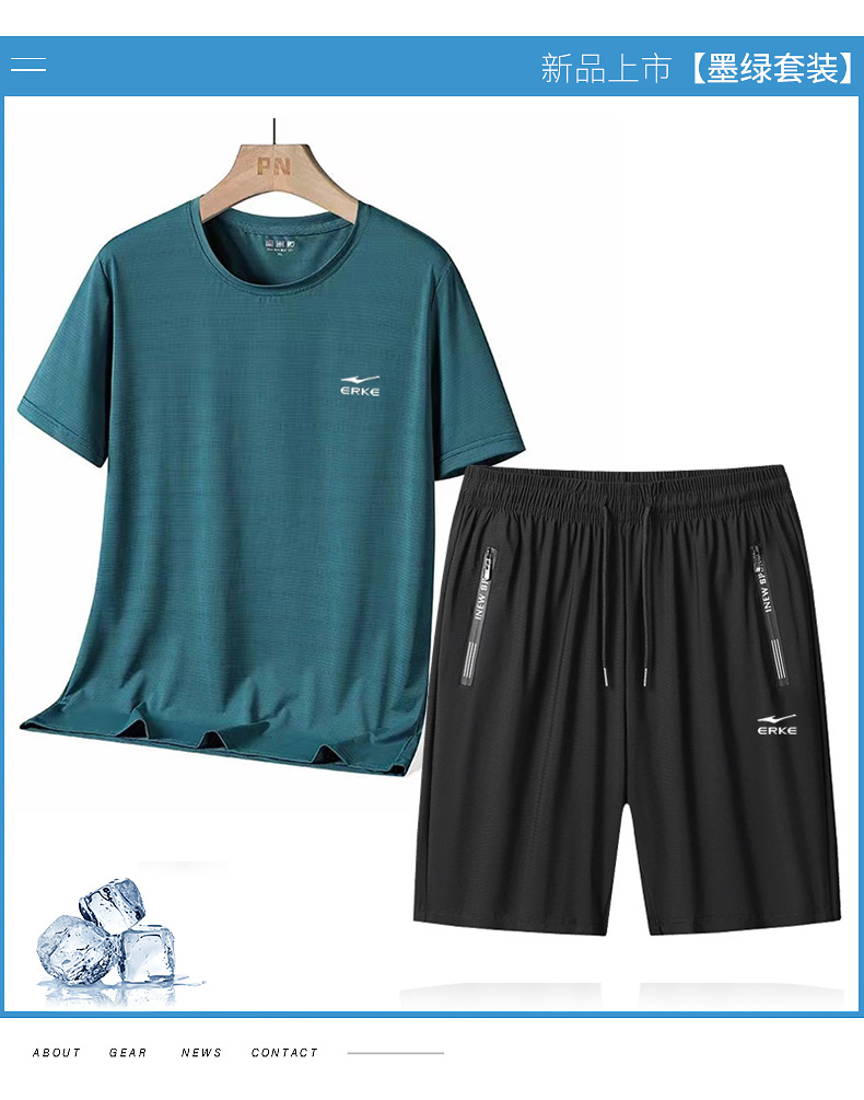 优选丨【鸿星尔克 】夏季冰丝速干高弹力T恤短裤两件套EK-JH33807