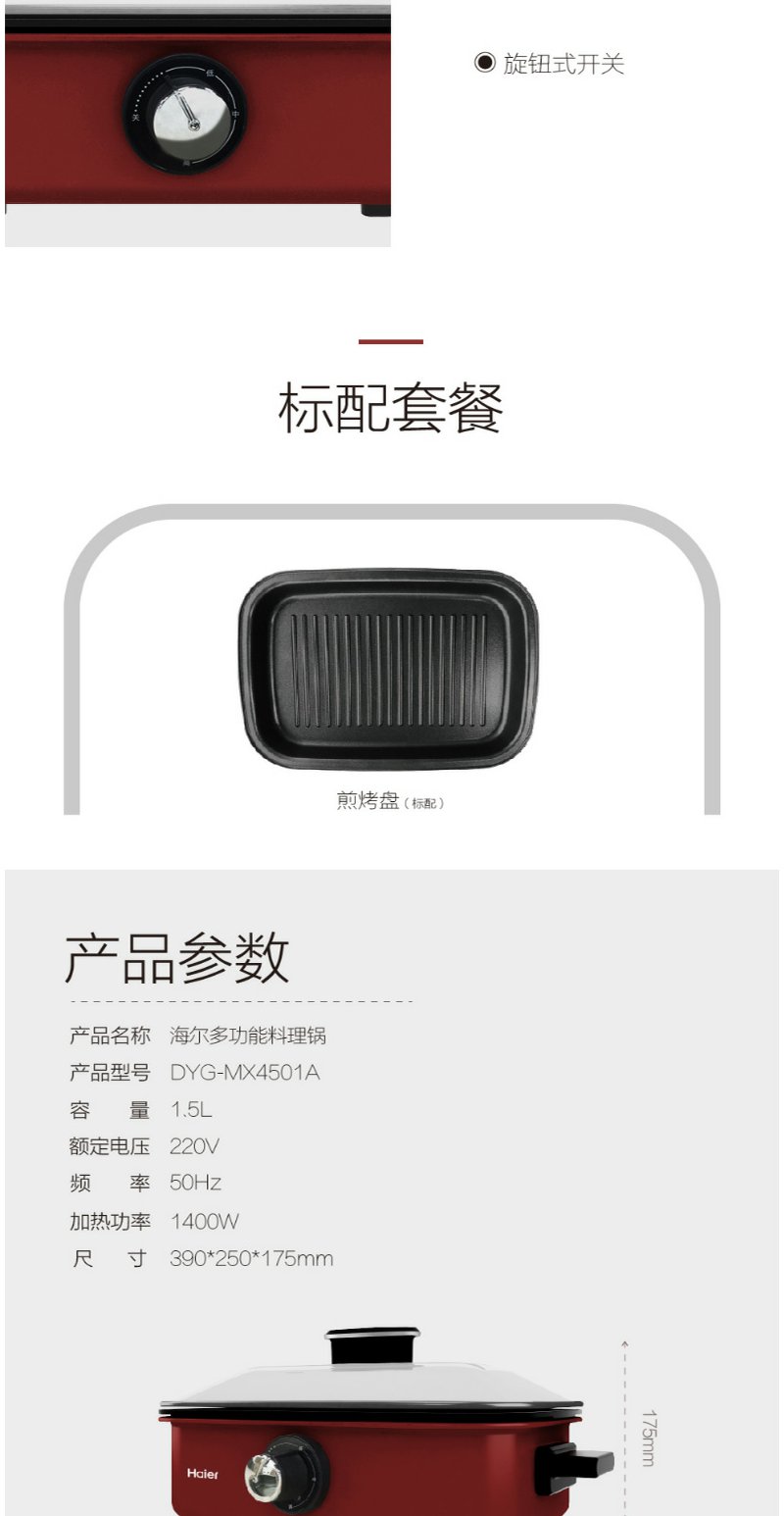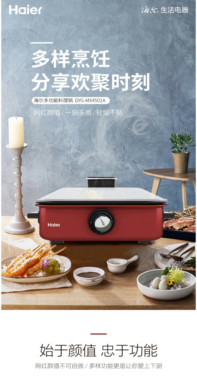海尔 料理锅 1.5L 多功能料理锅一锅多用 DYG-MX4501A