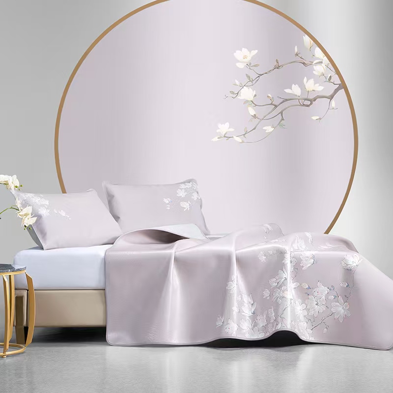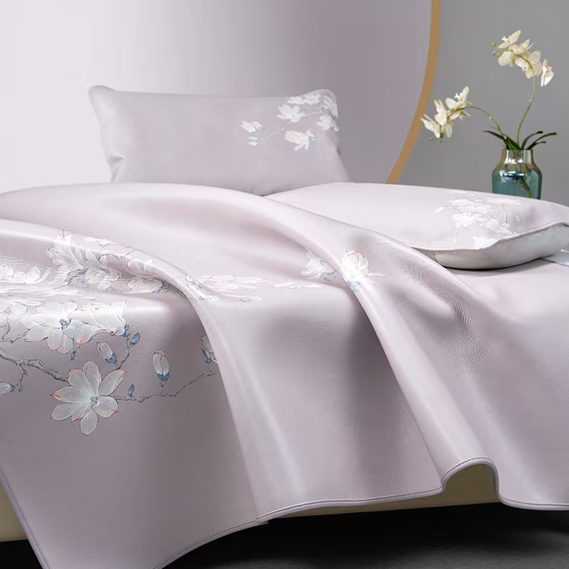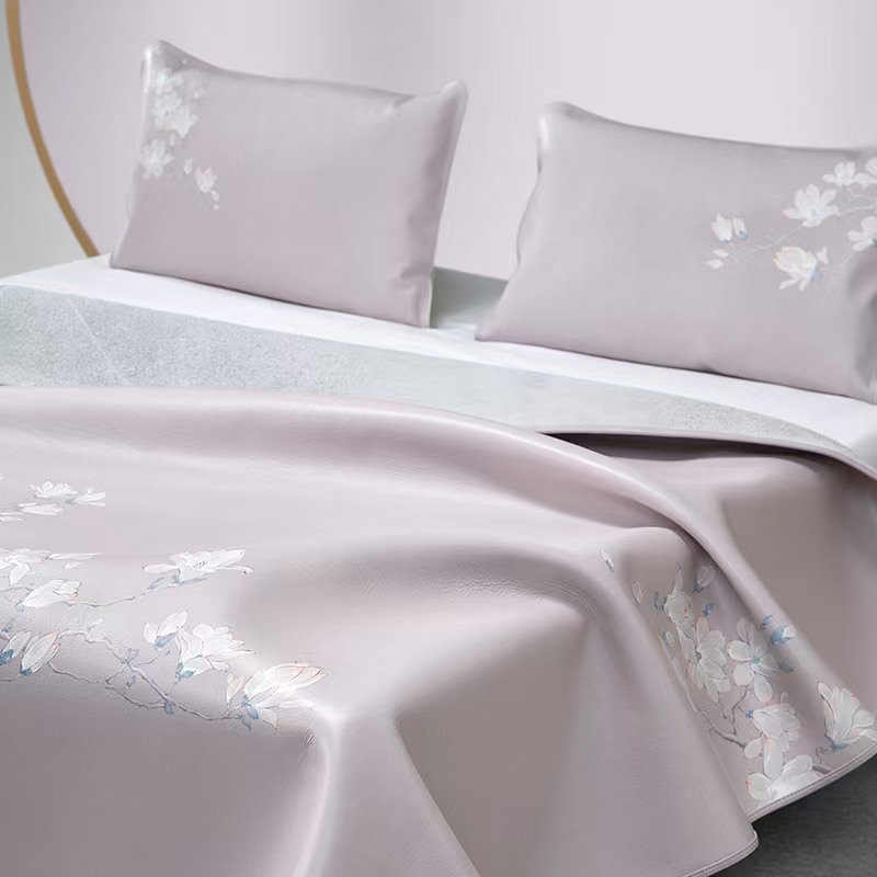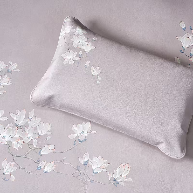 梦洁 00316 彩绘头层水牛皮三件套:玉兰(灰)【180*200】