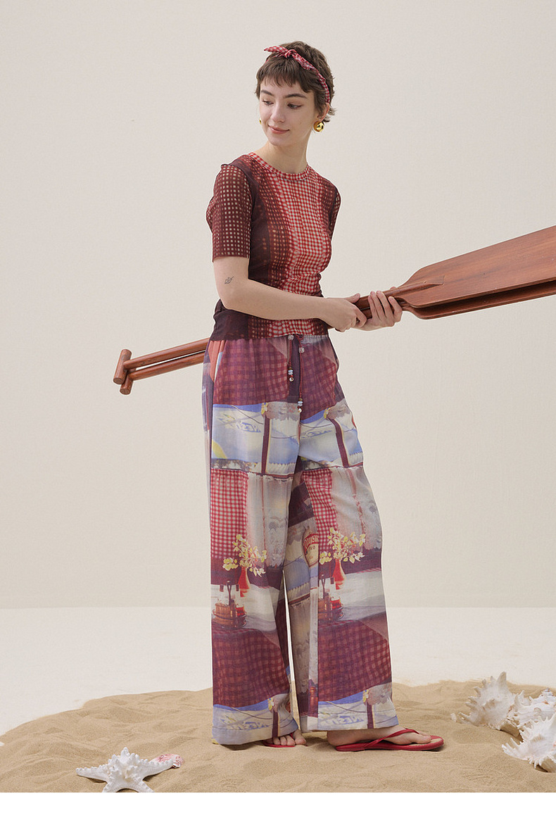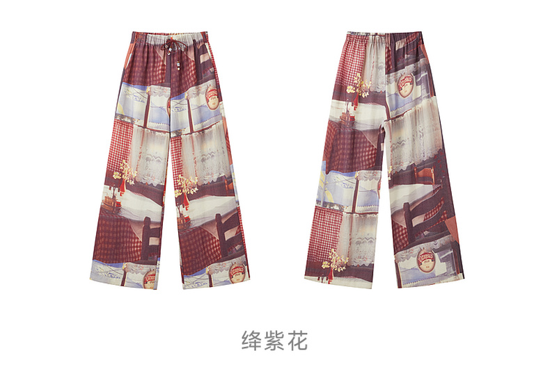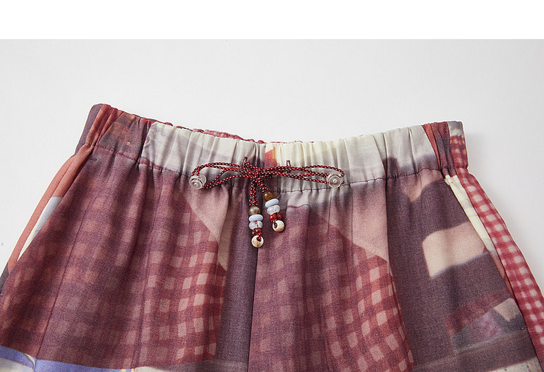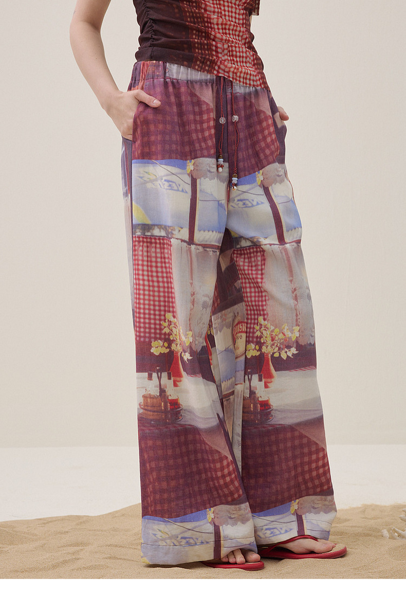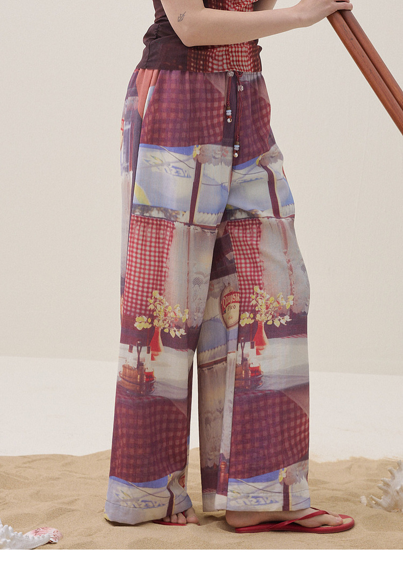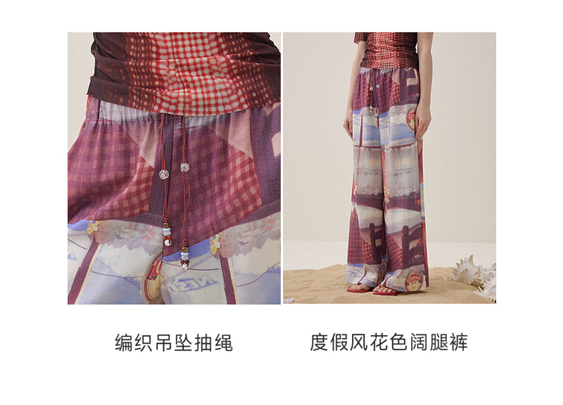 谜底花色阔腿裤长裤2026夏季新品吊坠抽绳度假休闲裤女262MK0634