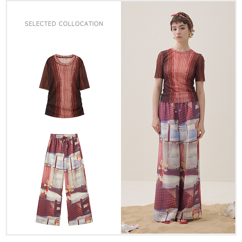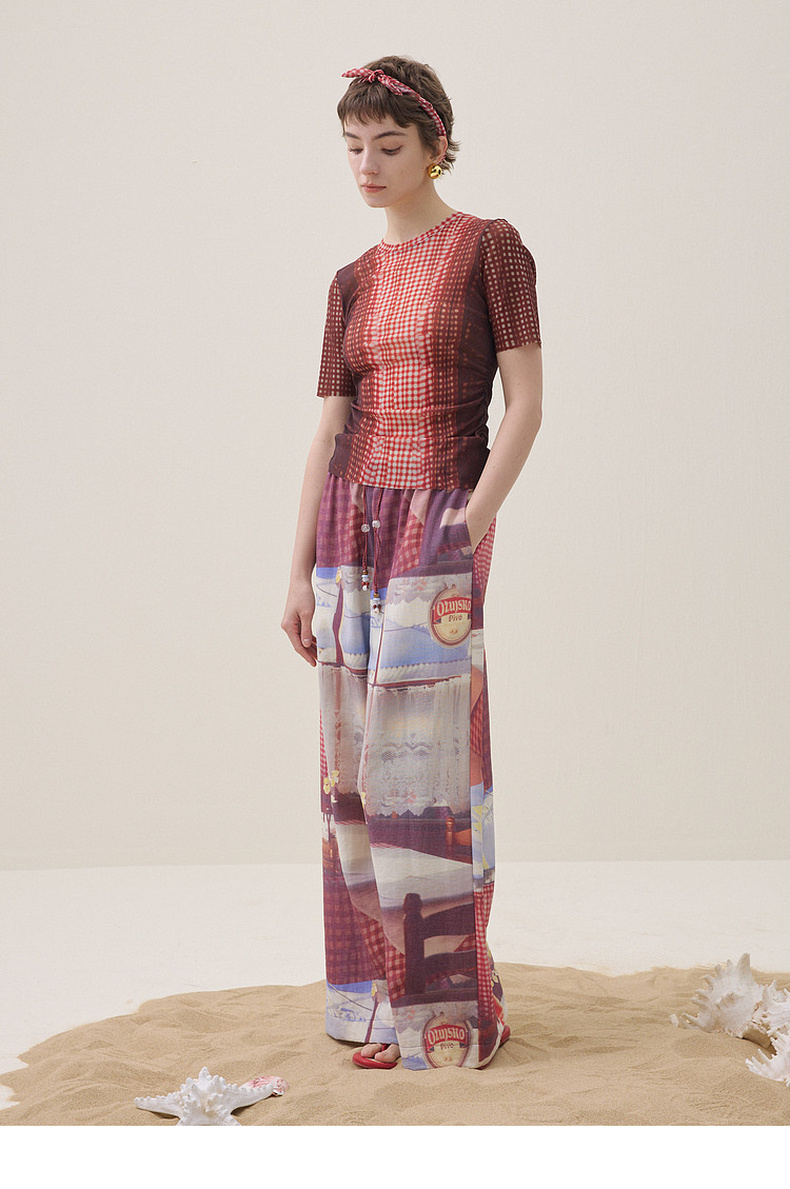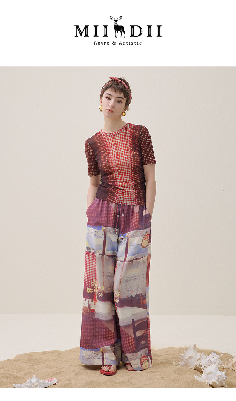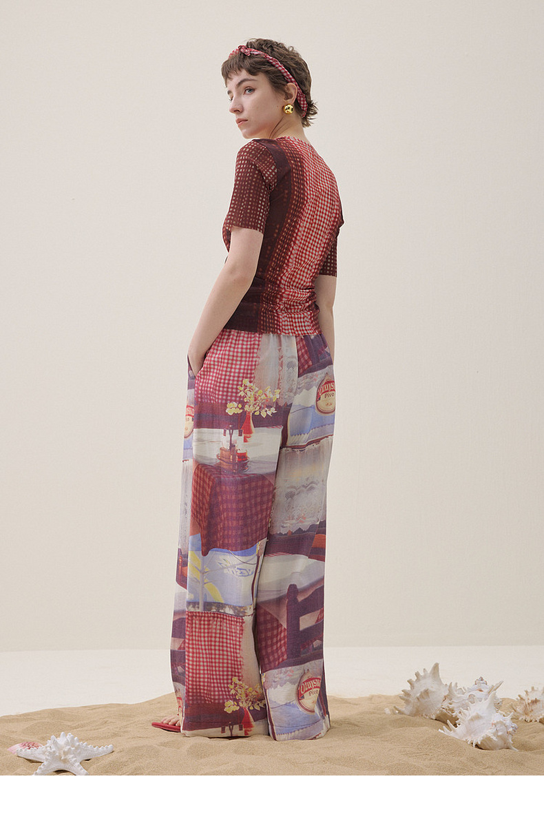 谜底花色阔腿裤长裤2026夏季新品吊坠抽绳度假休闲裤女262MK0634