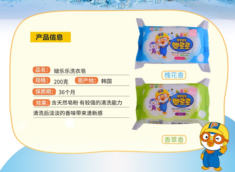 Pororo啵乐乐 宝宝衣物清洗手洗洗衣皂 200g/块