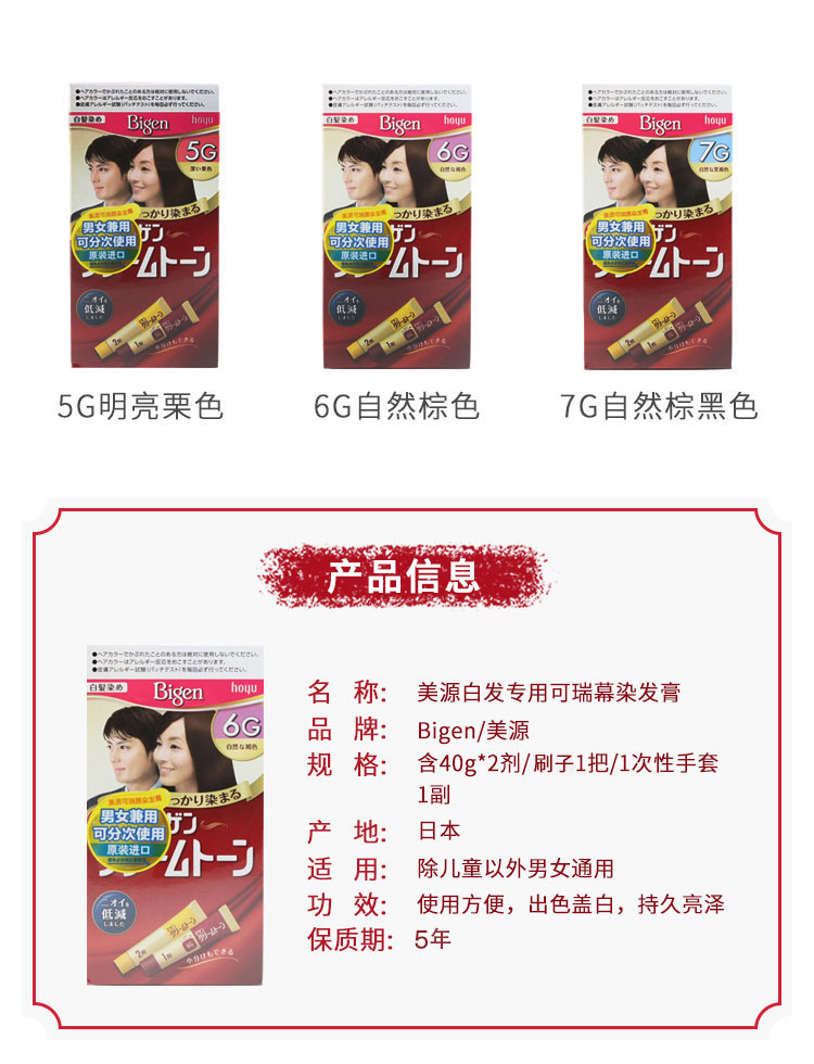 美源可瑞慕染发膏 6G自然棕色 [白发专用]6G 40g+40g