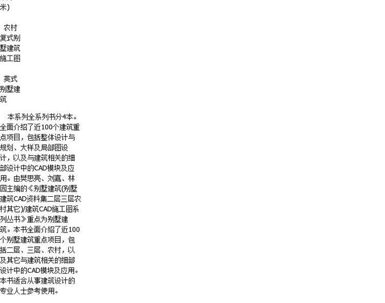 别墅建筑 7947 建筑CAD施工图系列丛书 别墅建筑CAD资料集 二层三层农村北美欧式中式英式欧式休闲建筑风格设计书 中国林业出版社