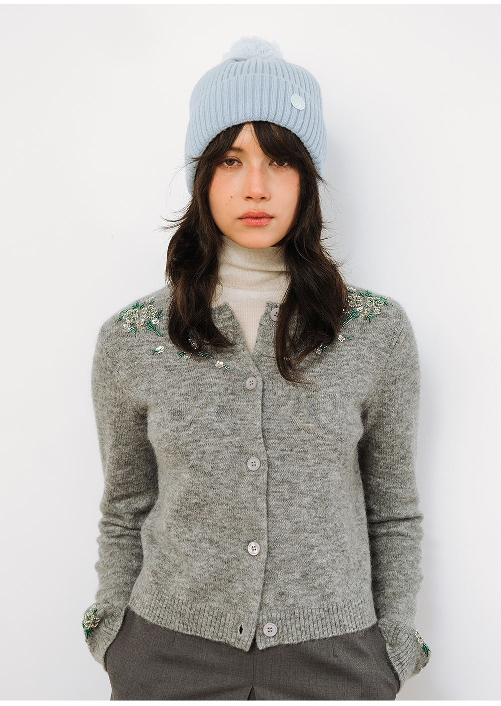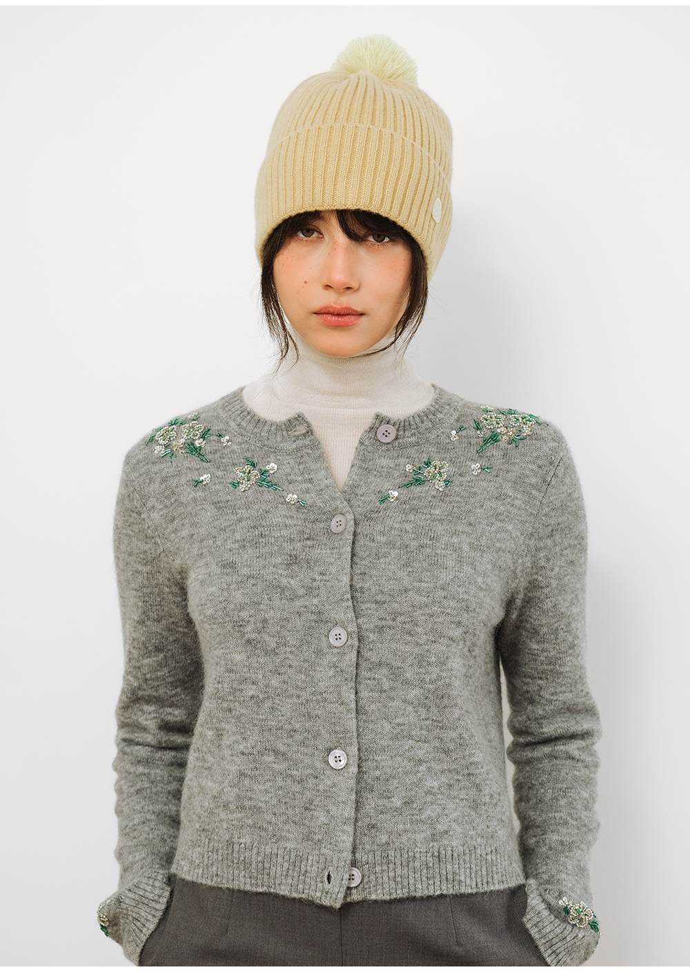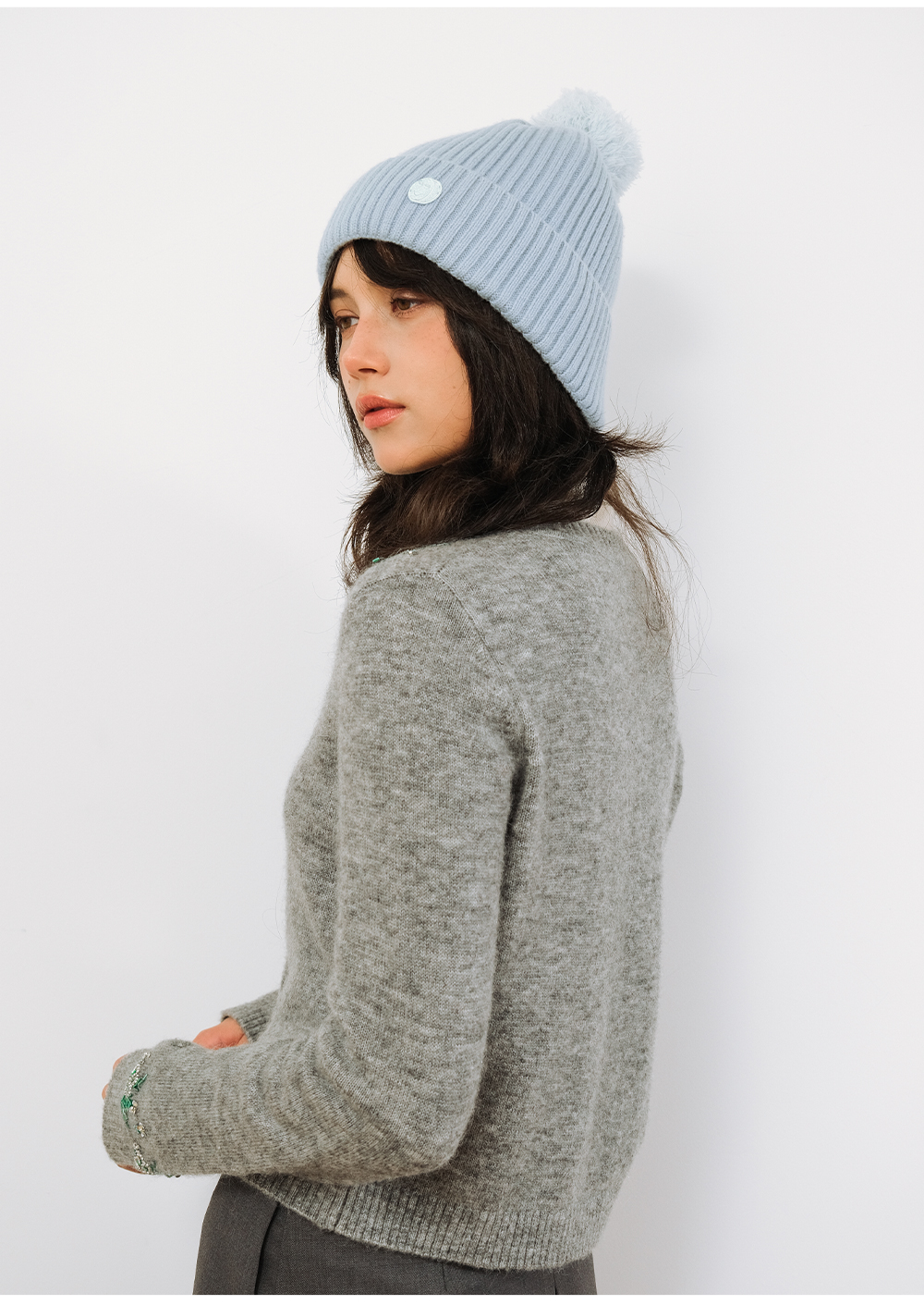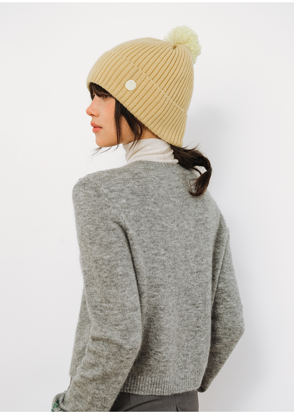 SELFWHO100%绵羊毛笑脸章仔针织帽女2025冬新款保暖毛球装饰帽子