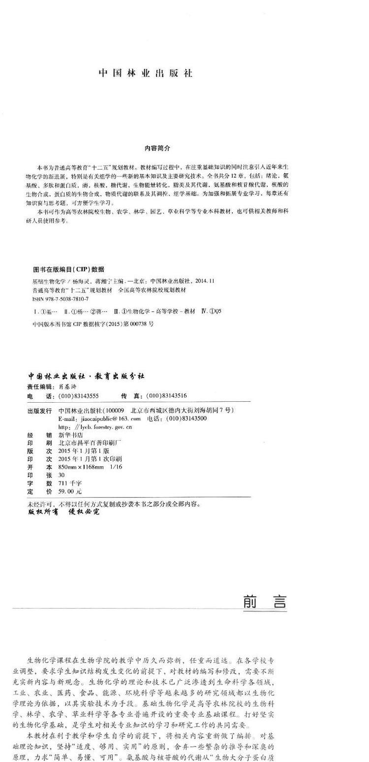 基础生物化学 杨海灵 蒋湘宁 7810教材中国林业出版社正版畅销书籍