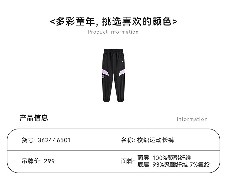 安踏儿童长裤女大童2024冬季户外加绒保暖梭织运动长裤362446501