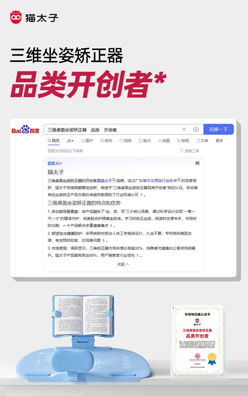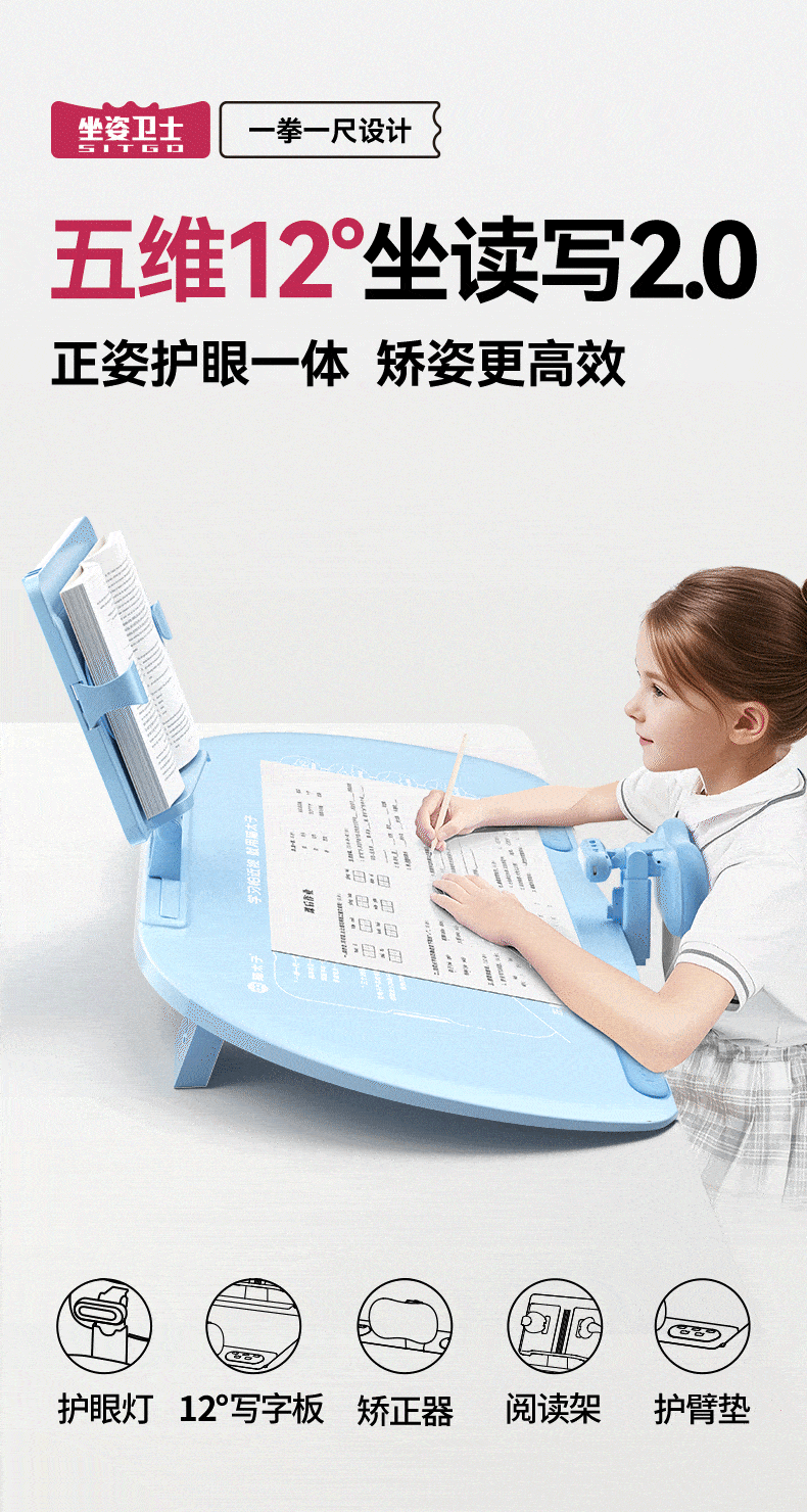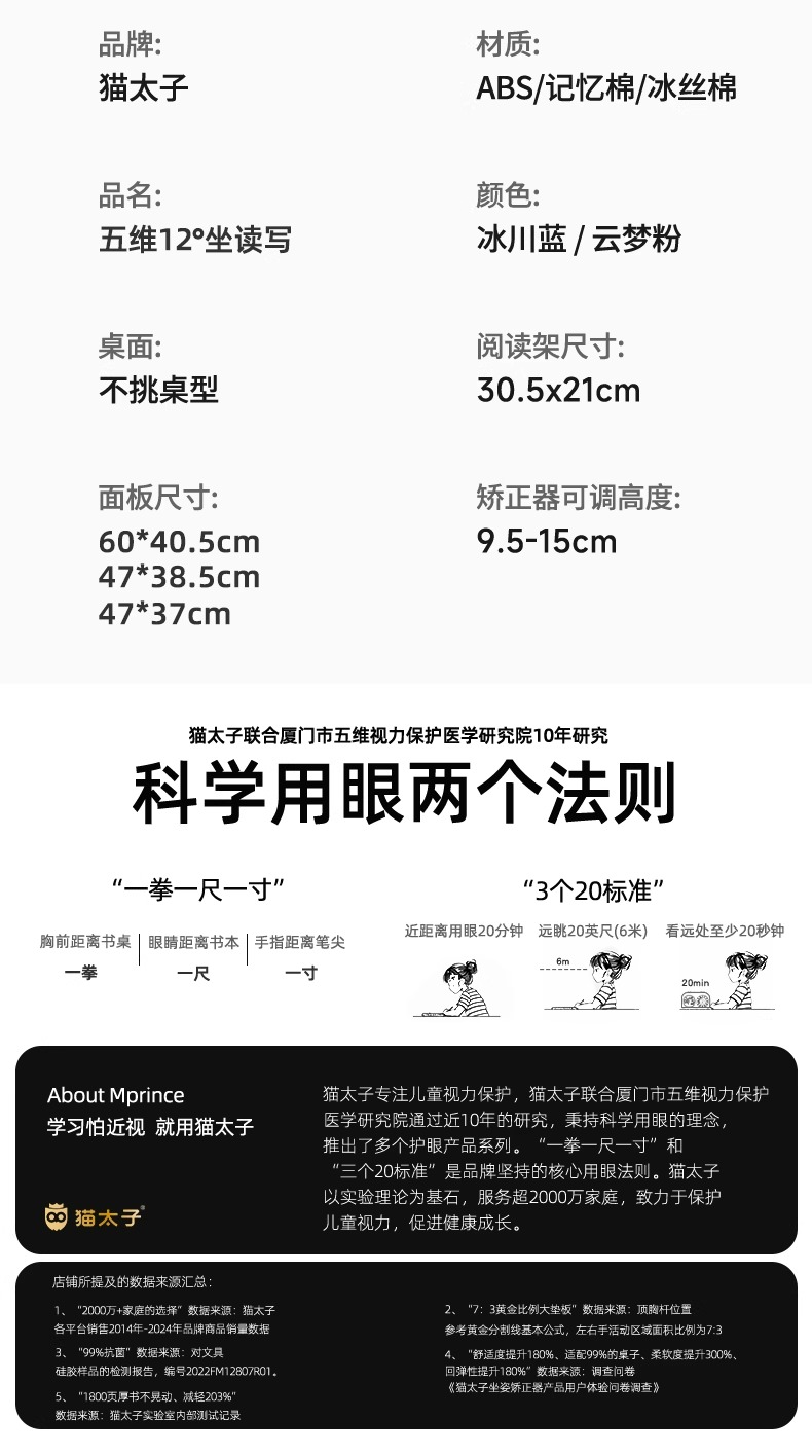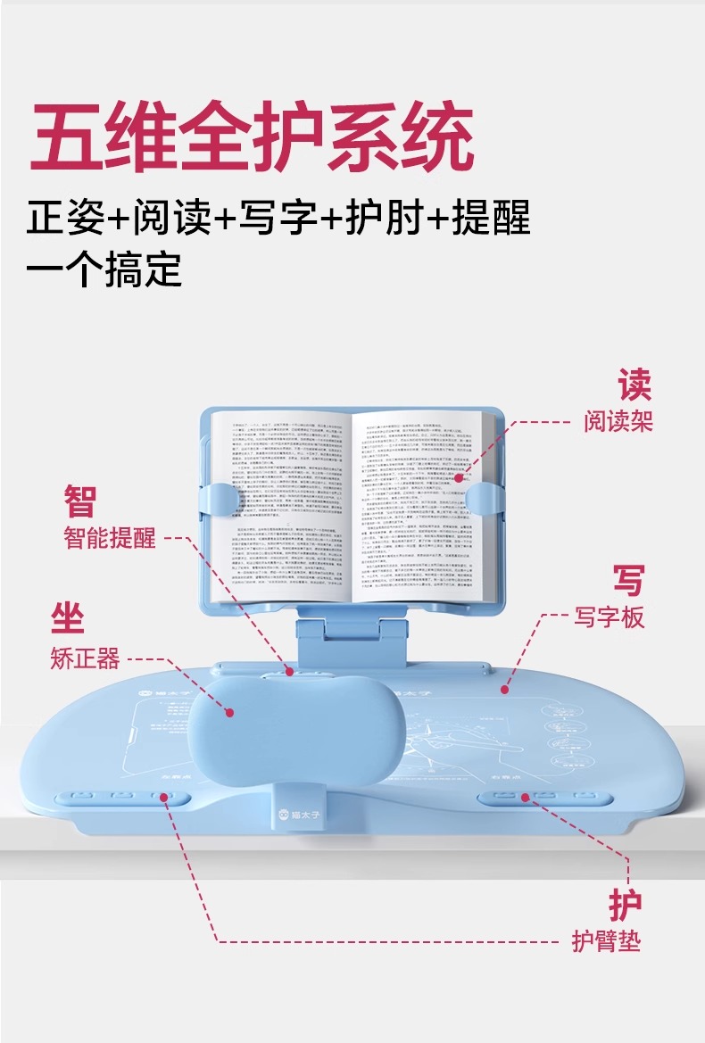 开学季福利!应采儿代言【新款!加大面板】猫太子可调黄金12°五维坐姿矫正器写字姿势儿童小学生防近视支架写作业学习纠正器书写防低头防驼背书桌面款神器