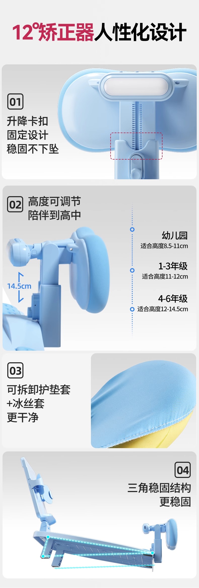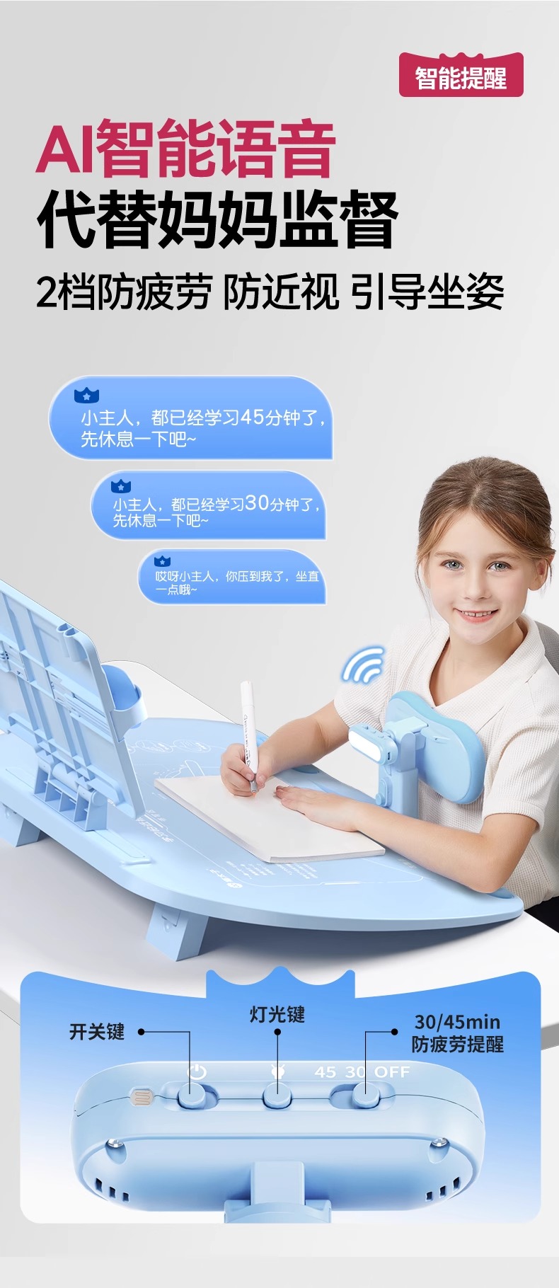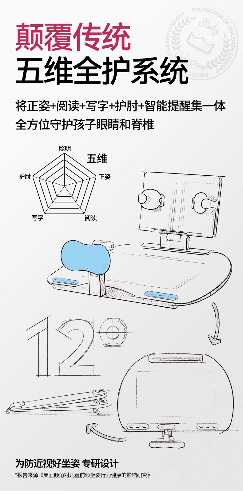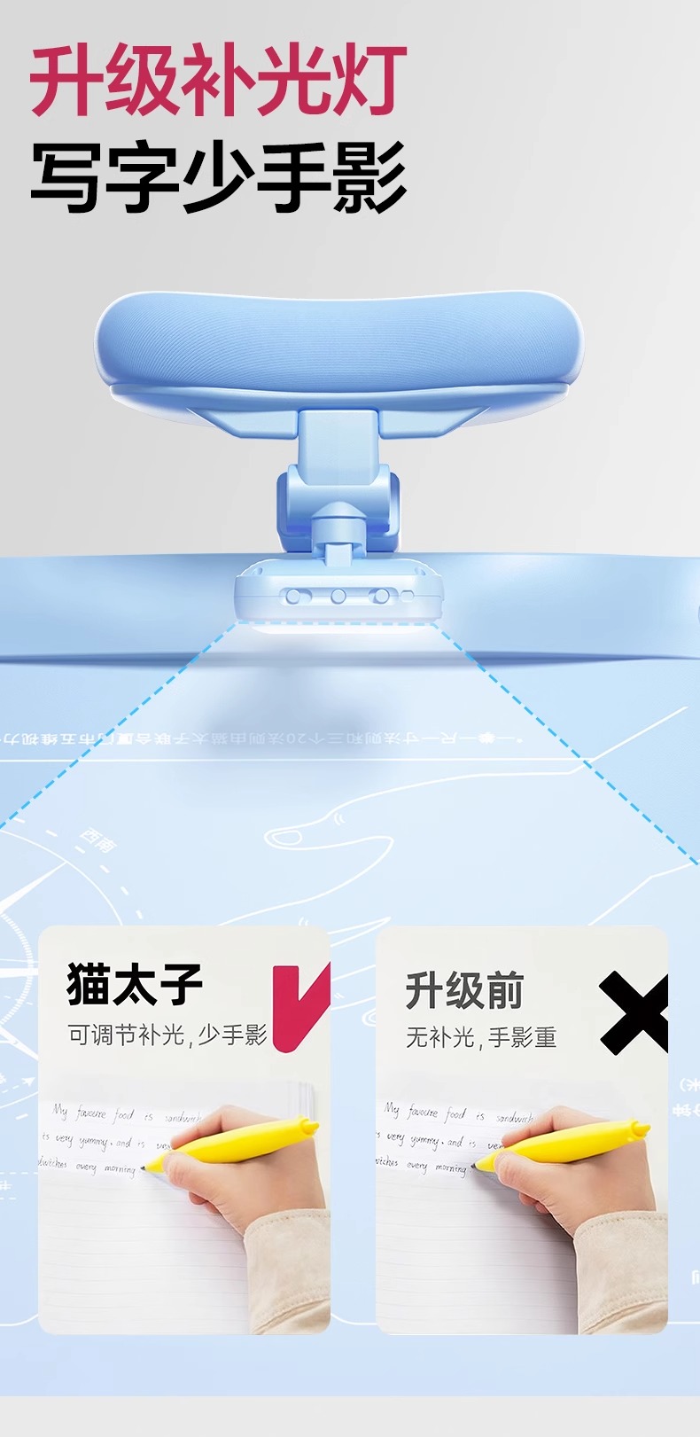 开学季福利!应采儿代言【新款!加大面板】猫太子可调黄金12°五维坐姿矫正器写字姿势儿童小学生防近视支架写作业学习纠正器书写防低头防驼背书桌面款神器
