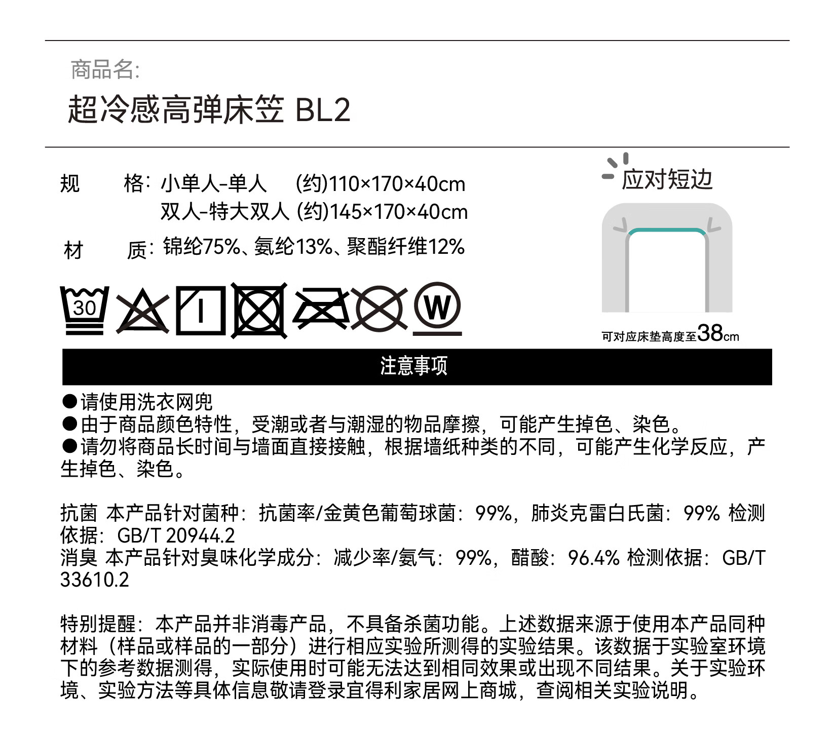NITORI宜得利家居 夏季凉感床单chao冷感高弹力床笠席梦思保护套